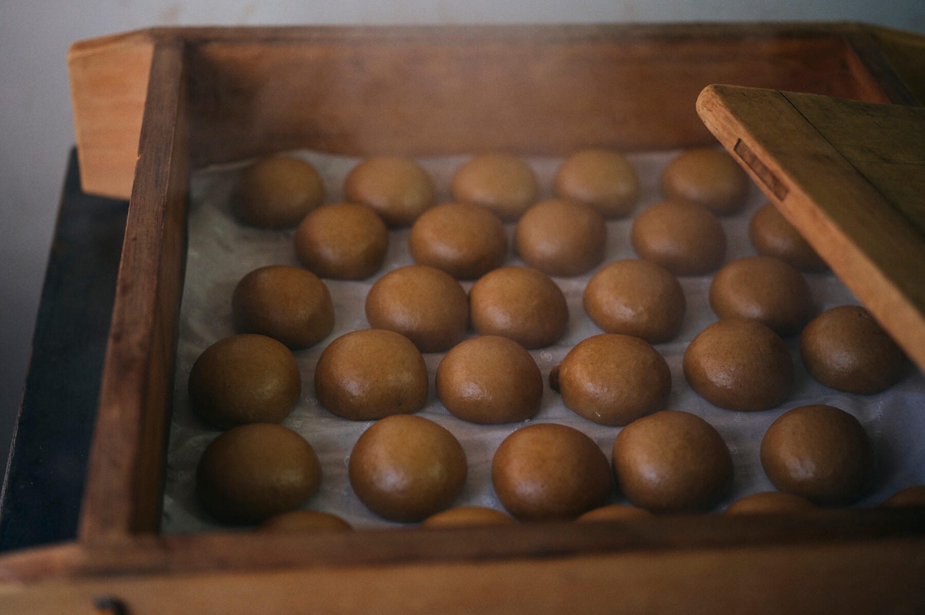 蒸し上がると、ふっくら。飾り気はないが、その丸みには楚々たる風情がある。皮は色だけでなく、香りも力強い。