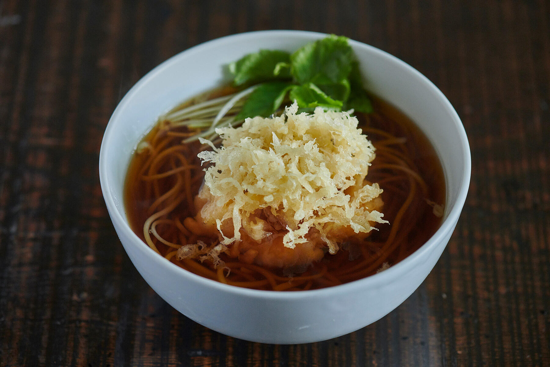 このつゆで“ざるそば”を手繰れば、繊細な蕎麦の風味に力強さが加わり、甘味も一層、鮮明になる。香ばしい“手挽きそば”とも対等に渡り合い、重層的で奥行きのある味わいが生み出される。