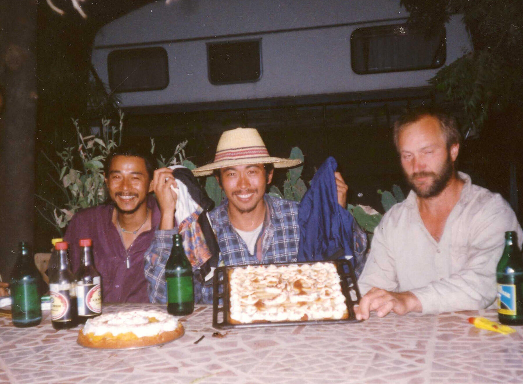 そのキャンプ場で30歳を迎えた日、用事を済ませてテントに戻り、午睡していたらハッピーバースデートゥユーの歌声が聞こえてきた。テントを開けると、海賊のような不良中年たち数人がニヤニヤ笑いながら歌っている。サハラ砂漠の地雷原を一緒に越えた仲間だ(そのエリアは軍の指揮の下に移動しなければならず、自転車は車に積む必要があった。当時はヨーロッパからアフリカに車を売りにいく無頼漢がわんさかいて、そんな彼らの車に自転車を積ませてもらい、10日間寝食を共にしたのだ。砂漠を越えたあと、僕は自転車の旅に戻ったのだが、このキャンプ場で彼らに追いつき、再会していたのだった)。