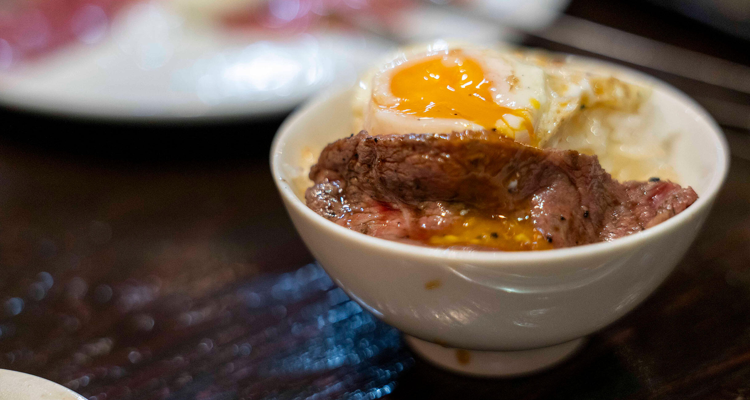 そこに炙ったロースを乗せて、網の上で香ばしく仕上げたにんにくを2~3片加えたら、あとはひたすら肉を喰み、卵とタレで汚したライスをがっつけばいい。みるみるうちにライスとロースが減っていく。ああ、なんて幸せな時間なんだろう。