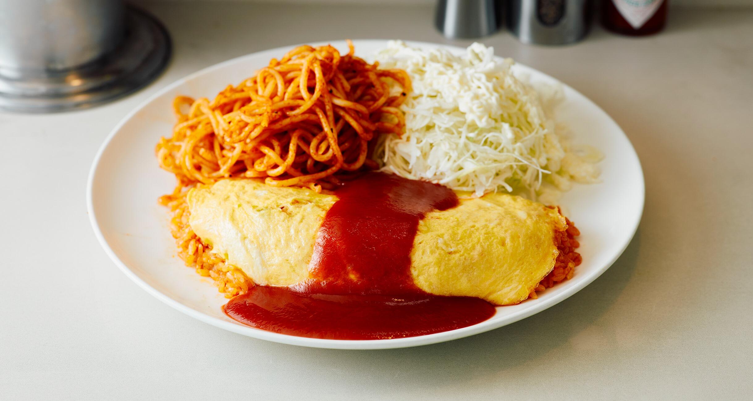 『むさしや』のオムライスのルーツは、この店の三代目店主の弟が東京會舘や帝国ホテルなどで洋食の料理人をしていたこと。もとは中華など洋食以外のメニューも展開していたが、昭和の高度経済成長期頃にオムライスやナポリタンを始めてみると、それがたちまち人気に。現在も当時のレシピのままつくっているので、見た目は少しレトロで、味はどこか懐かしいのだ。
