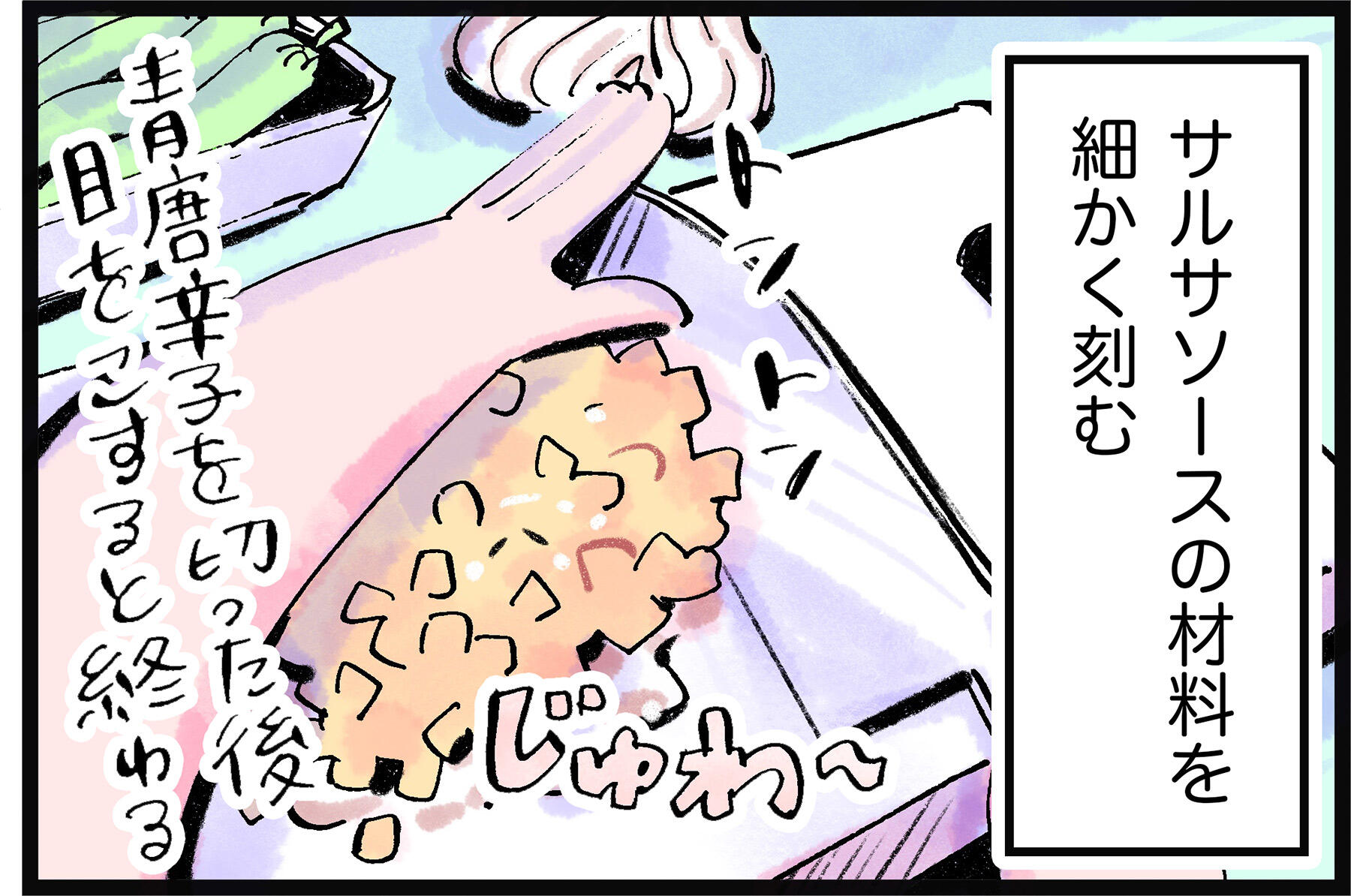 漫画家の谷口菜津子さんが『日本酒dancyu vol.2』からつくったのは、旬のフルーツをサルサソースに仕立てた、瑞々しい酒肴でした。