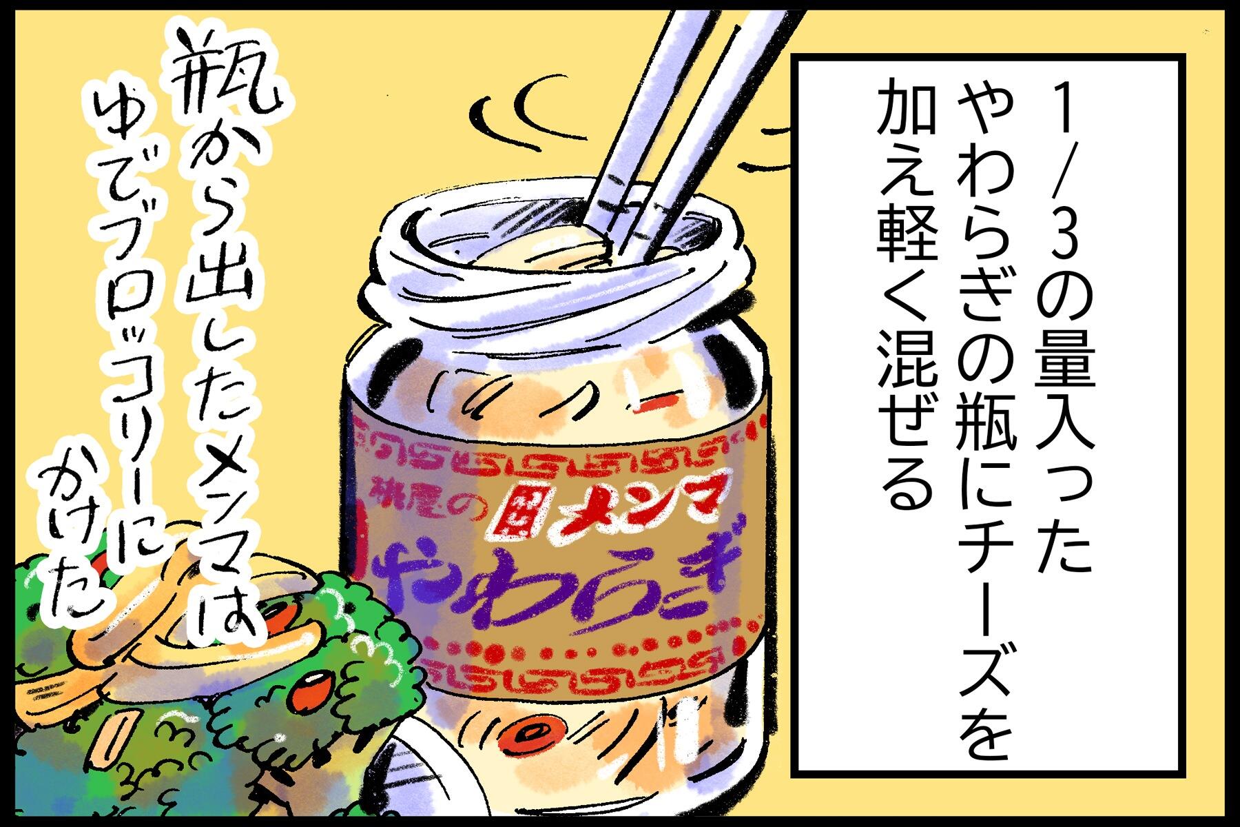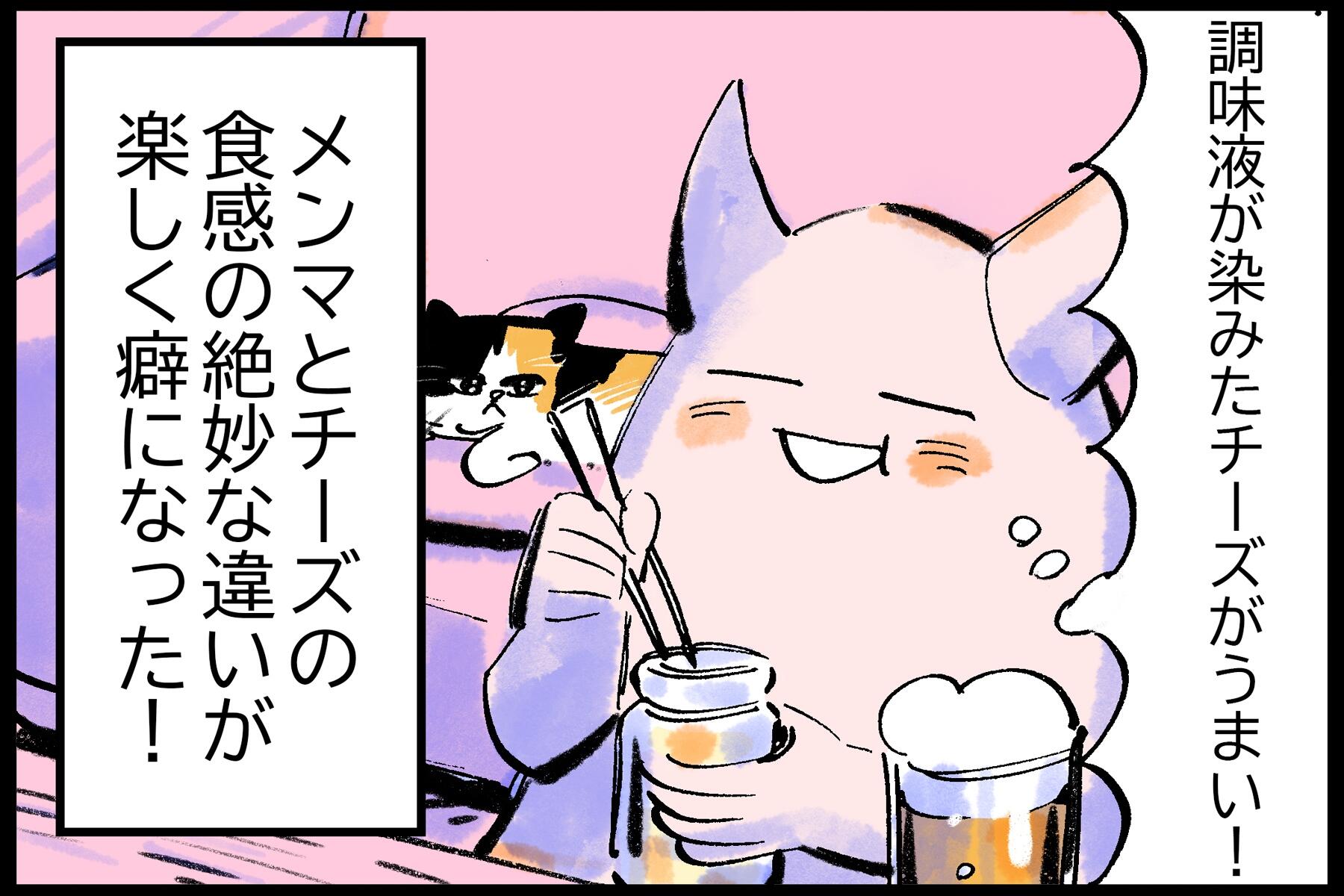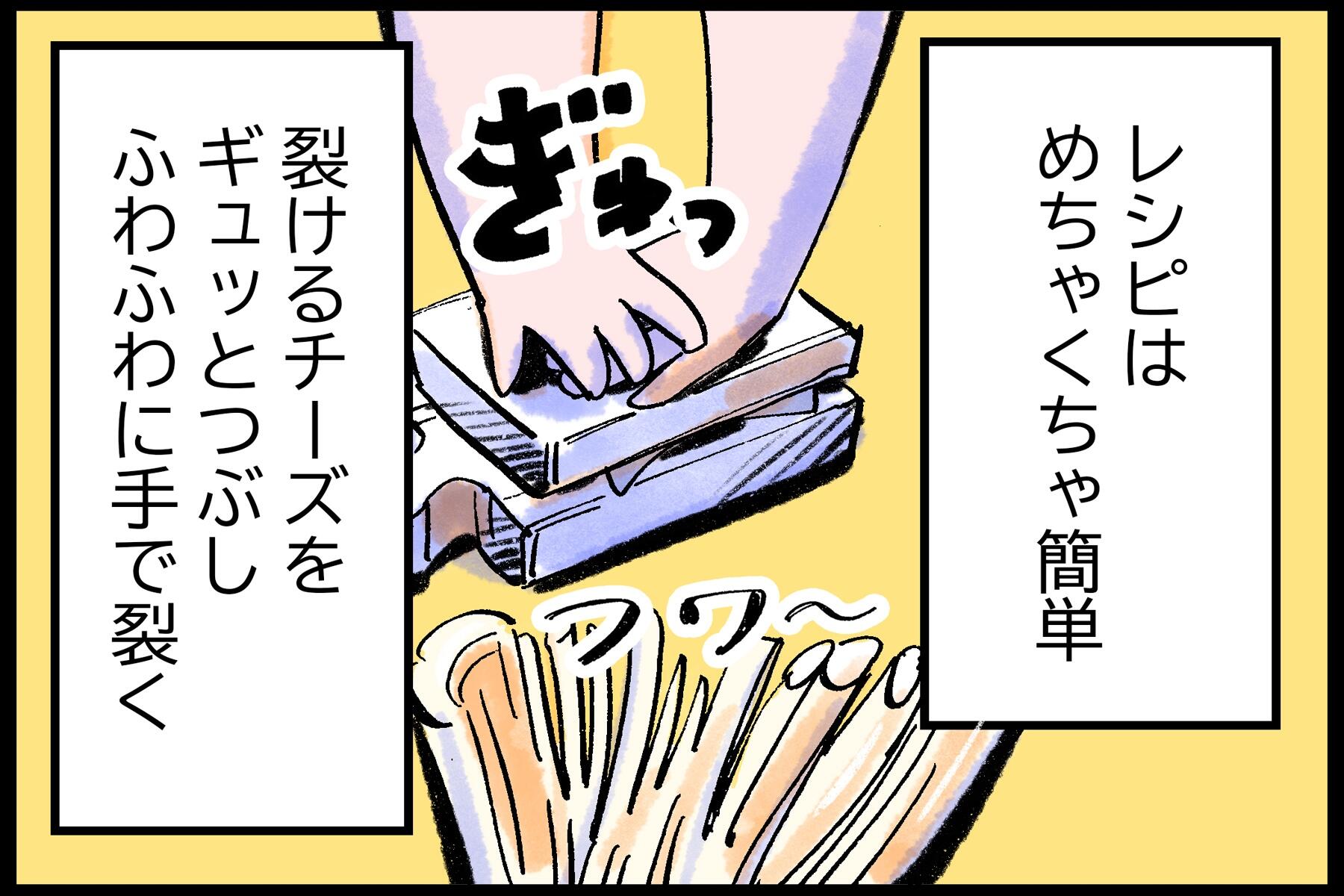 日ごと涼しくなるこの頃、今夜のあてはチーズにしよう?漫画家・谷口菜津子さんがコンビニで手にとったのは、裂けるチーズと……何かの瓶詰め??包丁も火も、調味さえ不要の“裂くだけ”つまみです。