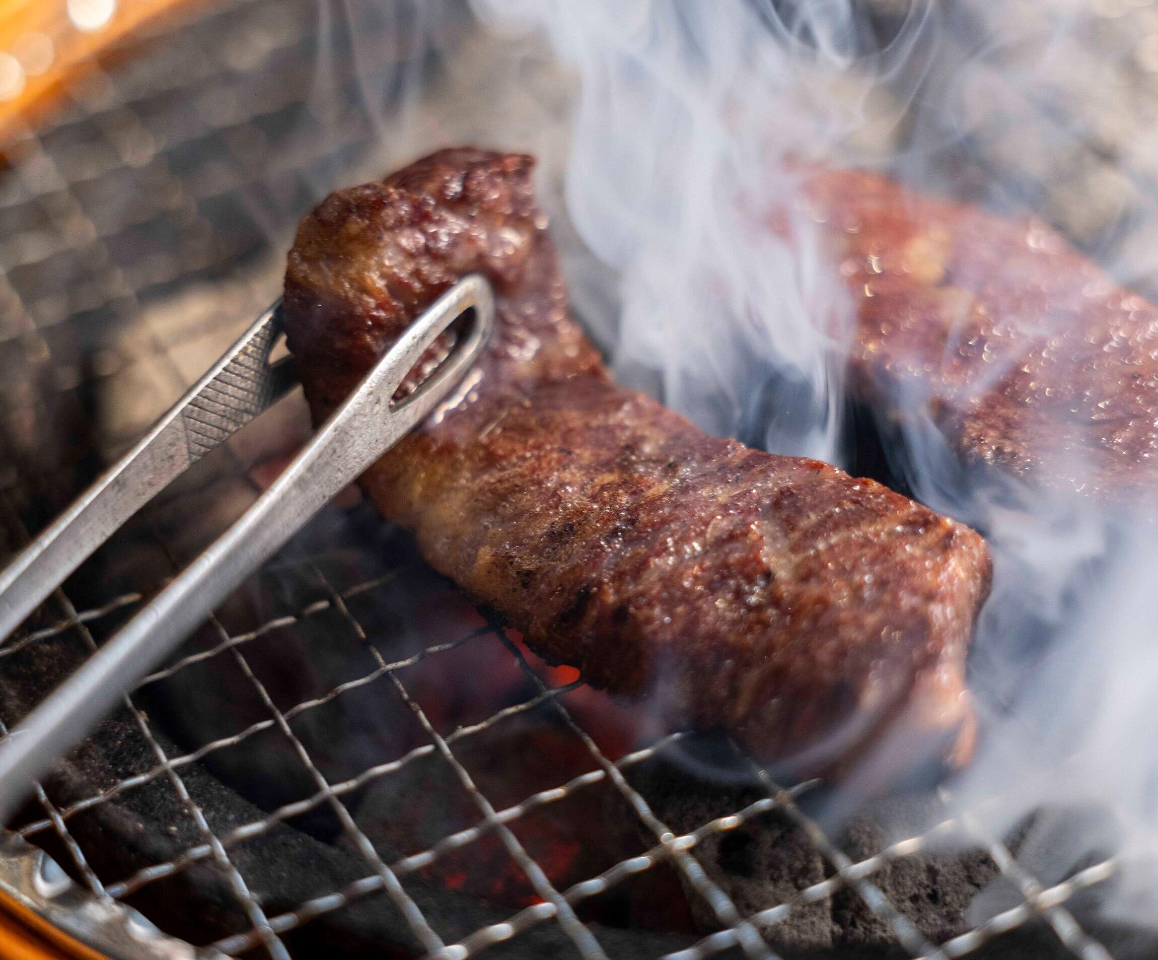 その名牛の味わいを引き出すのは、先述した香味野菜のもみダレだ。「長ねぎとにんにくは使っています。その他は秘密」と言うタレは卓上のつけダレとは別物。焼きながら、もう一度もみダレにつける「追いダレ」スタイルでタレを焼き重ねれば、肉が酒を、飯を呼ぶ。