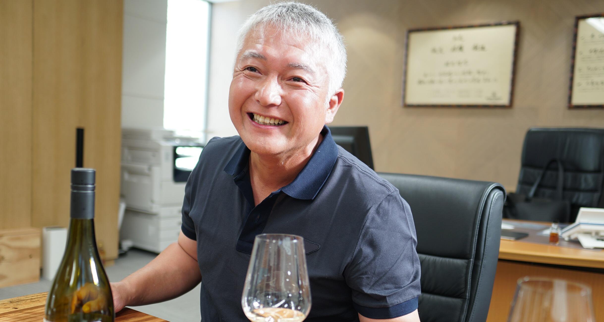 日本酒の「十四代」、芋焼酎の「富乃宝山(とみのほうざん)」。酒好きに知られる超人気銘柄が誕生したのは、それぞれ1994年と95年。どちらも二十代の若い蔵の跡継ぎが、自らの手で生み出した新しい銘柄であり、それまでになかった新感覚の味わいで、酒業界に革命をもたらしたと言われる存在だ。日本酒蔵と芋焼酎蔵、2人の跡継ぎの出会いから始まる35年の物語をお送りする。(写真は、西酒造が経営するニュージーランドの自然派ワイン「URLAR」を試飲する西さん。)
