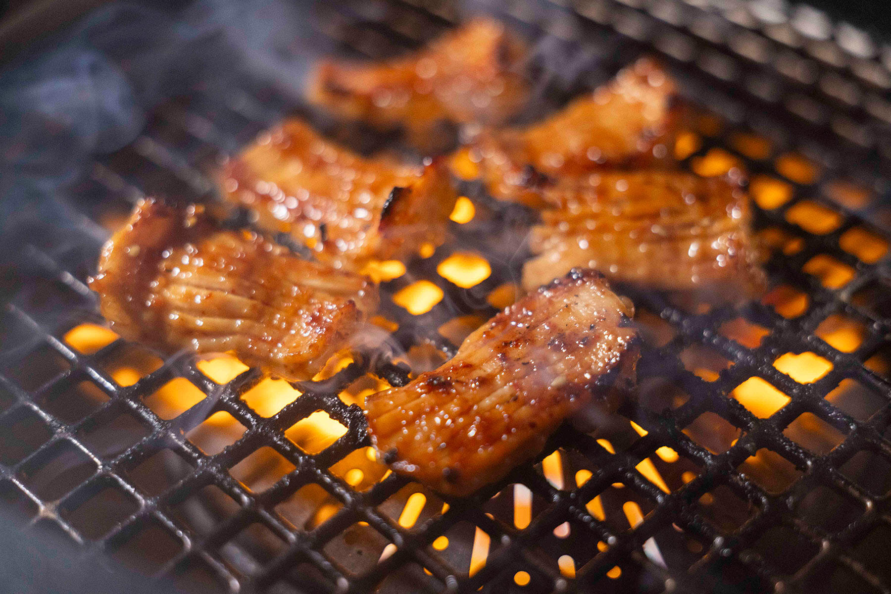 マルシンやカメノコを24cmの筋引きで手切りした上ロースの断面は、丁寧に引かれたふぐ刺しにも似たつるりとした滑らかさ。タレの軽快さも相まって、焼いてなお舌触りが艶めかしい。