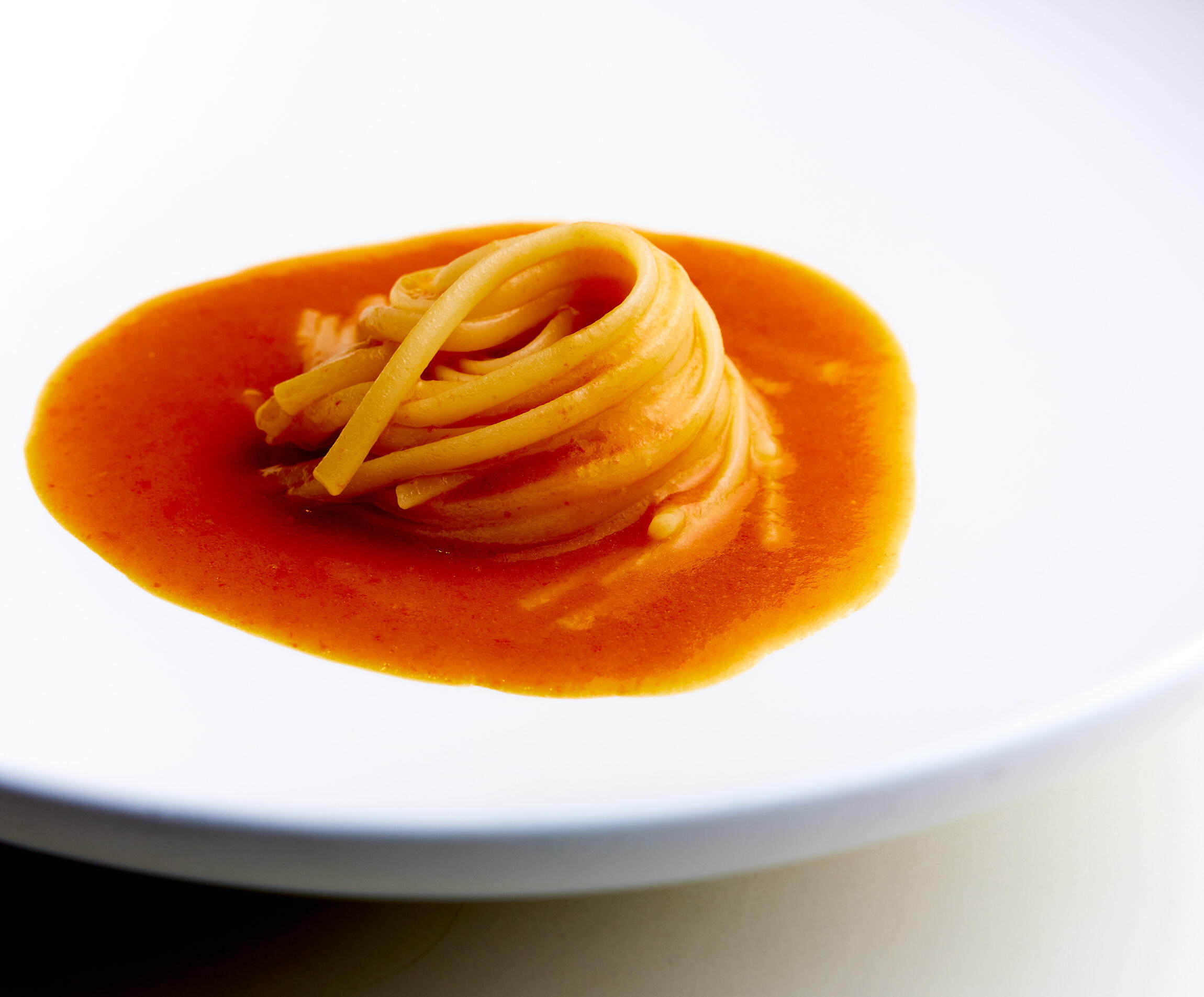 見た目は、黄金色を帯びたオレンジ色のソース。具材は一切なし。美しすぎる、洗練された静かな佇まい。一口食べた瞬間、「トマト、うまっ!!!」と、思わず心の中で叫んでしまう(笑)。