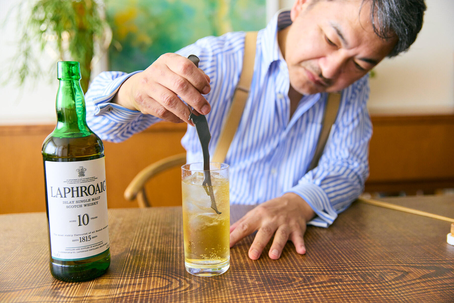 「個性的なラフロイグを、どんな飲み方にするかを考えるときには、パクチーから東南アジアや沖縄などの亜熱帯の気候を連想し、そういう環境で飲むのに適した、スカッとする飲み方ということで、ハイボールに決めました」