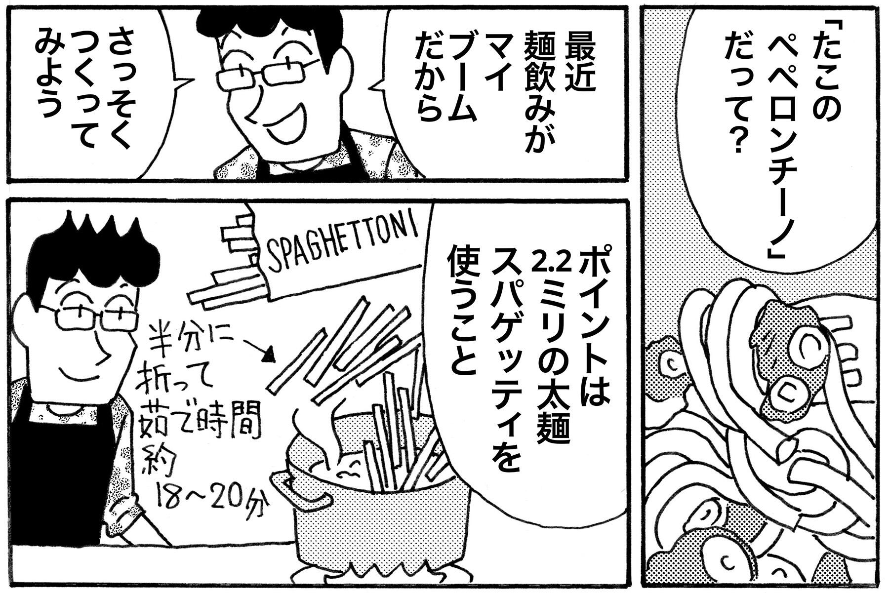 19時の晩酌を日課とする漫画家・ラズウェル細木さん。今宵つくるのは、噛んで・噛んで・噛みまくると、たちまち白ワインを呼ぶ太麺パスタです。