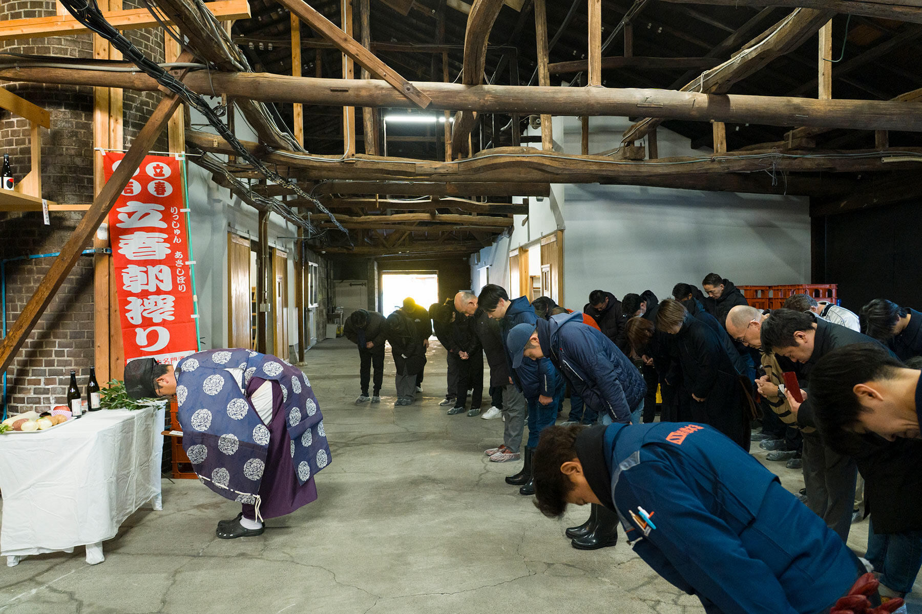 そして酒販店は当日の早朝、必ず酒蔵に集合しなくてはいけない。完成した酒と共に地元の神社の御祈祷を受け、無病息災・家内安全・商売繁盛の祈りを込めたら、それぞれの店へ持ち帰る。商品の発送はできるが、どんなに遠方でも誰かは酒蔵に来ることが条件になっている。