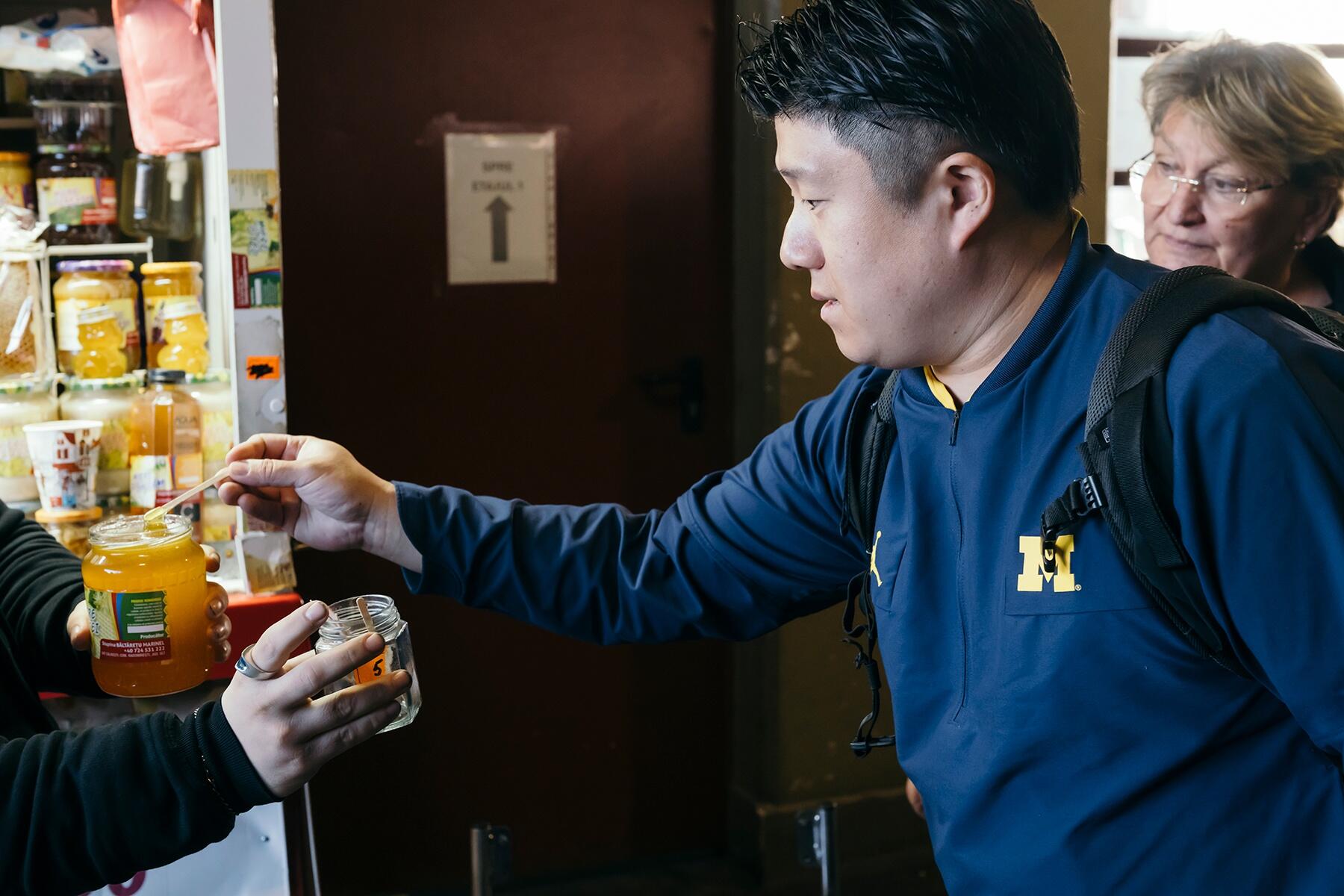野菜、果物などのほかにルーマニア名産の蜂蜜や、この時季しか味わえない貴重な「ムスト(ワインになる前のぶどうジュース)」などを購入。市場で買うものが終わったら、車に乗り込んで移動します。日本食に欠かせない食材や調味料を求め、アジア食料品店、そしてプロ御用達の巨大スーパー「METRO」へも回ります。3軒回ったところで、昼よりちょっと前くらいの時間に。異国の地で心を打つ和食を準備するために、手に入る最高の食材を揃えた後は、日本大使公邸内の厨房へと急ぎます。