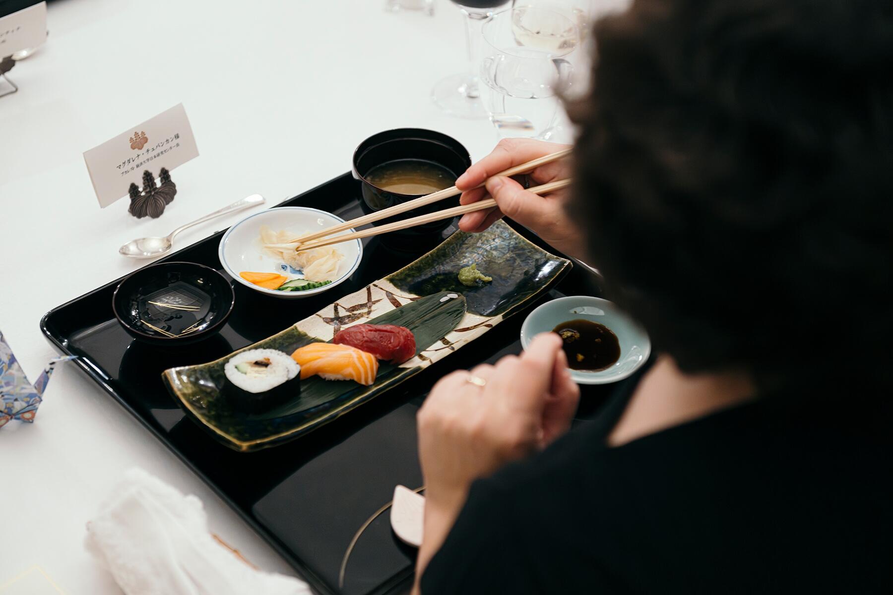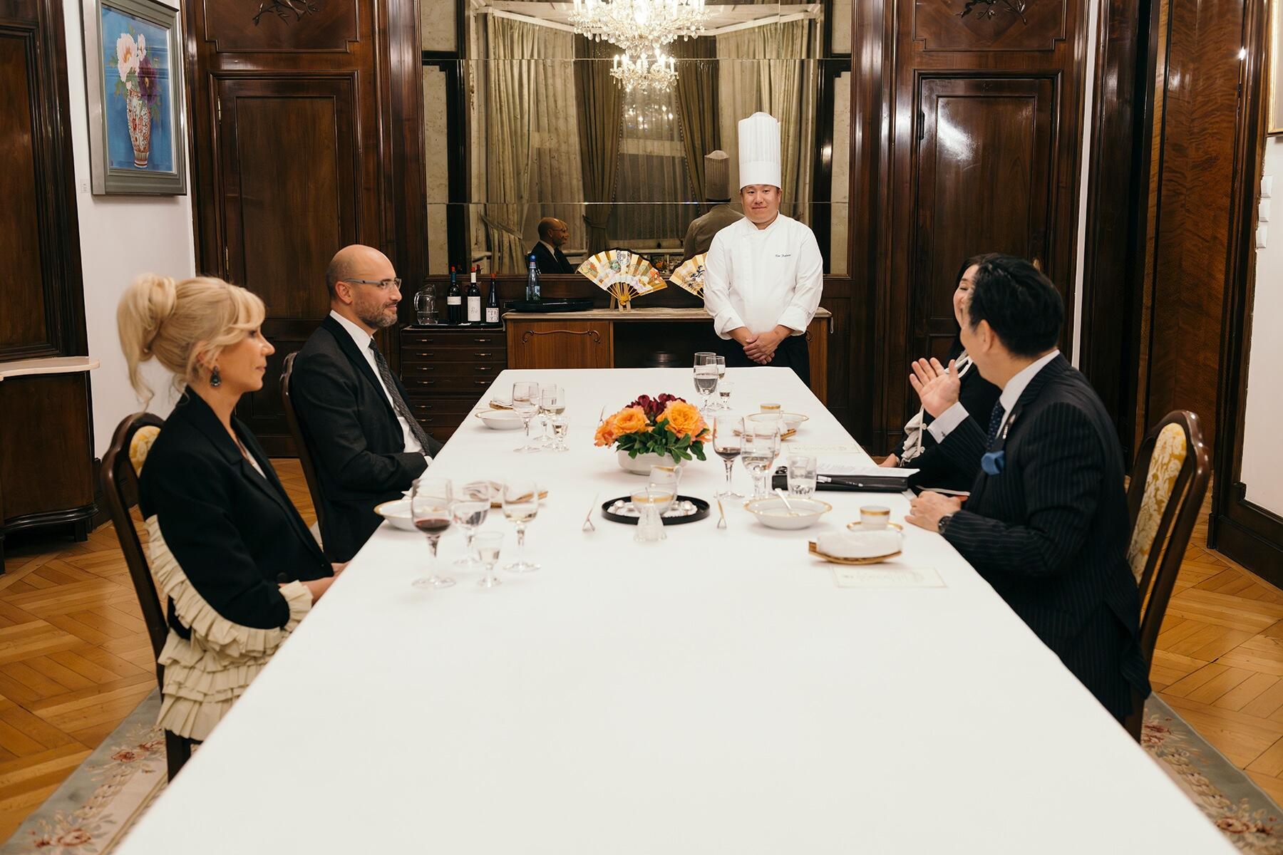 本日のゲストは、ブカレストの大学などで日本文化を研究する面々。訪れるゲストの空腹を満たすだけでなく、食を通じて日本のファンを増やし、文化の懸け橋となってもらうのも大事な役割です。深瀬さんは、事前に片江大使とゲストの情報を細かく共有します。和食に精通した方なのか、お箸に慣れている人か。そして、大使館を訪問するのが初めてなのか、過去に深瀬さんの料理を口にしたことがある人なのか。それぞれのゲストの背景を知り、その人に合った献立を提案します。