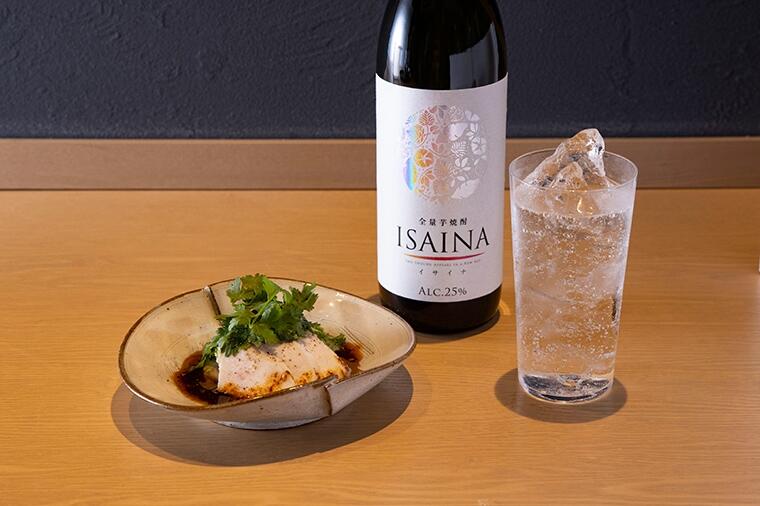 全量芋焼酎「ISAINA」だから。料理の流れで、香...