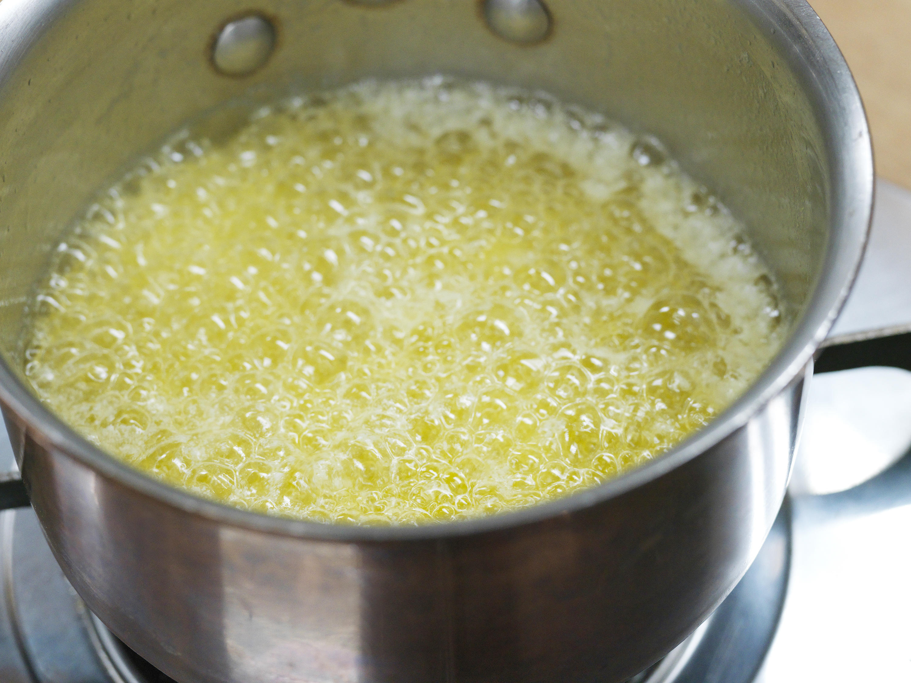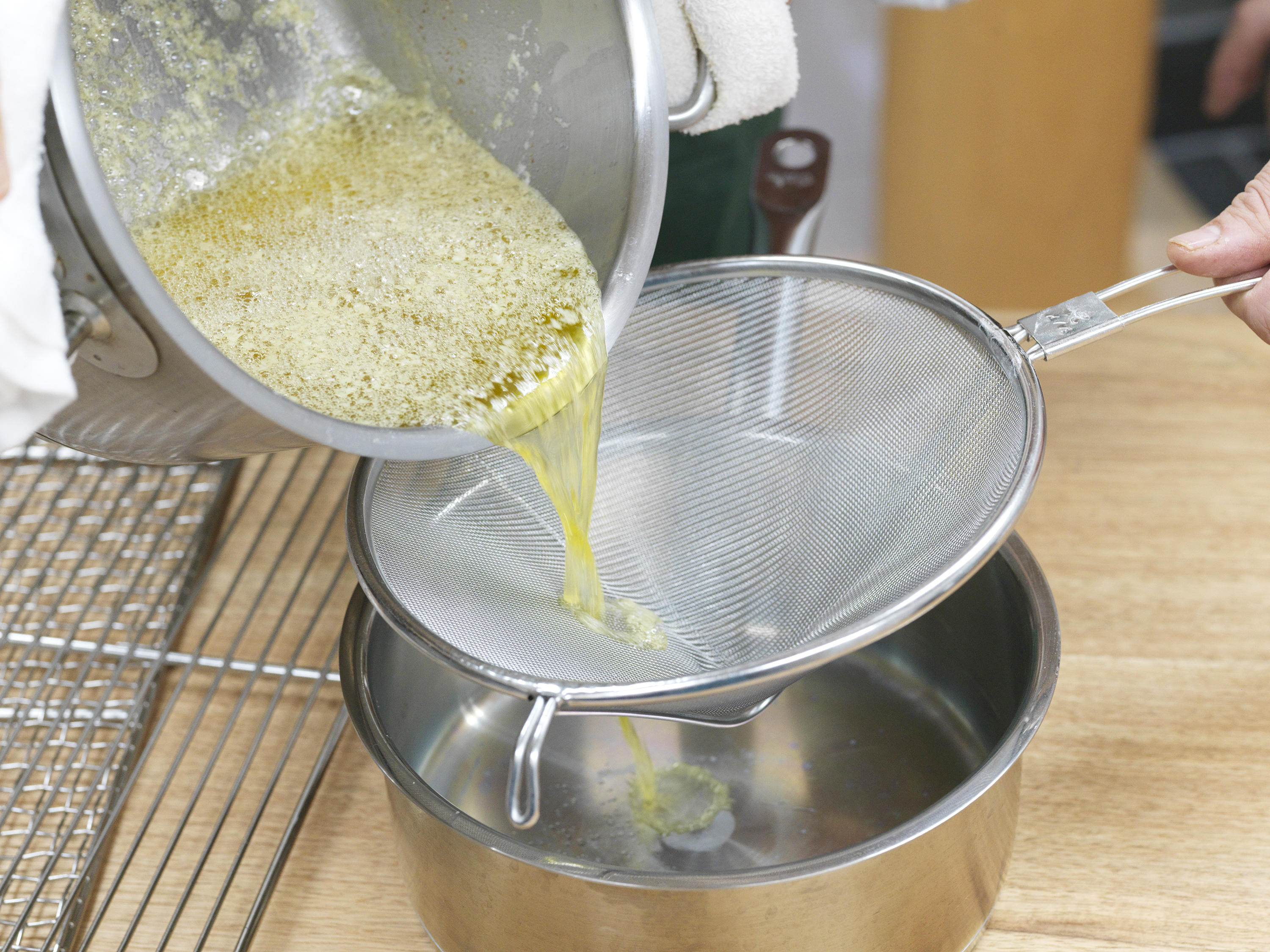 バターは火にかけると、たんぱく質が焦げることがあるので、濾して不純物は取り除きます。