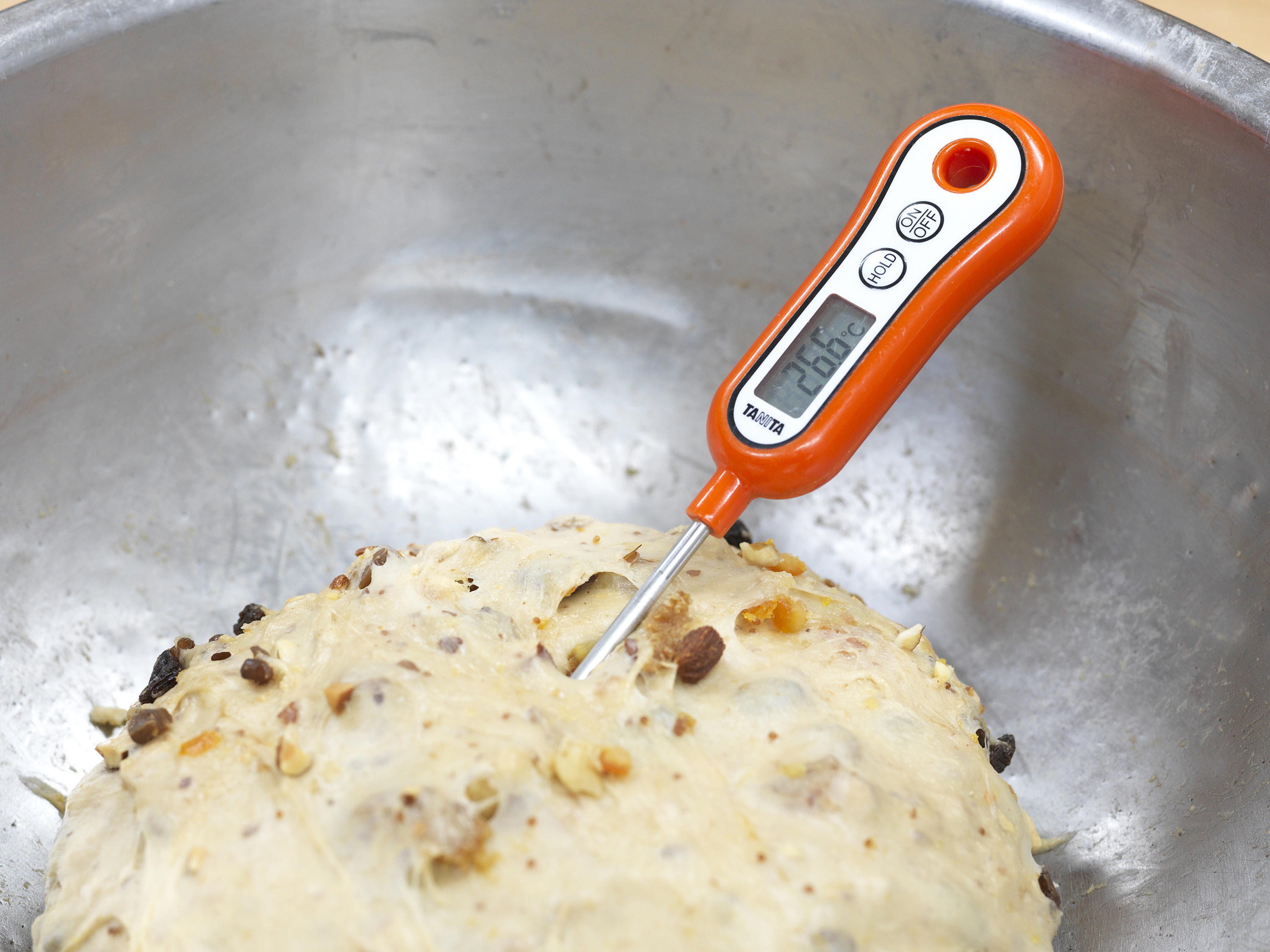 芯温計で生地の温度が26度〜27度であることを確認する。