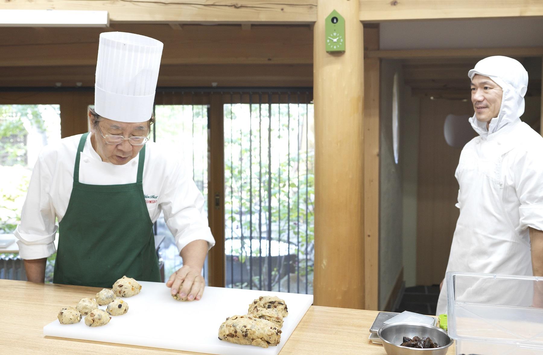 試行錯誤の末に辿り着いたレシピを、横溝シェフと焼き菓子部門チーフの丸山晃一さんが披露します。工程は発酵を含めて7時間以上かかりますが、手間をかけてつくる価値は十分にありますよ!