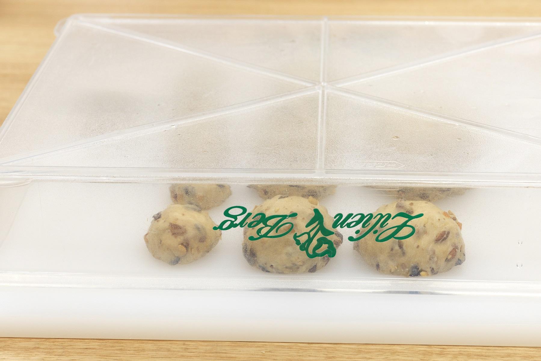 すべて丸めたら、内側に霧吹きをした、ばんじゅうなどの蓋を被せて、温かいところで30分ほど休ませる。