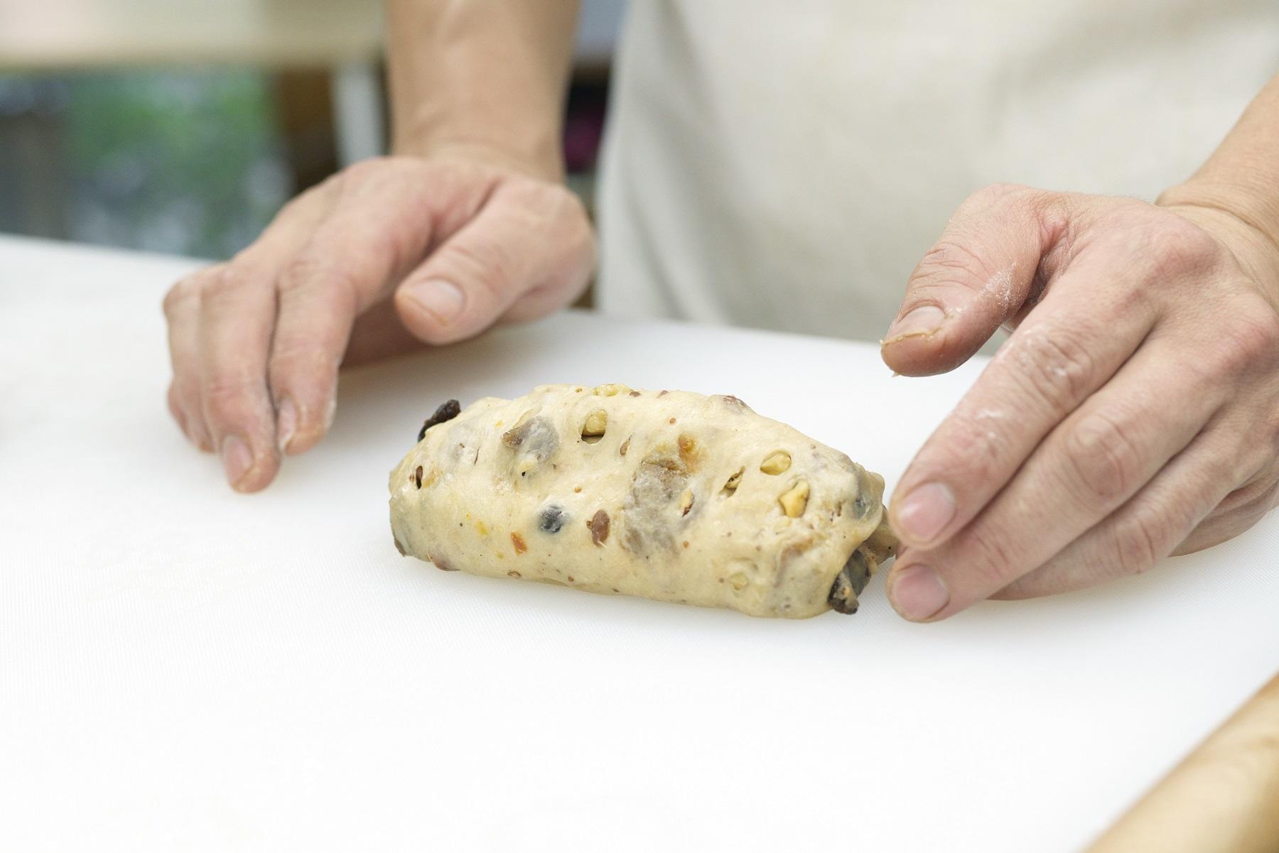 手で優しく覆って、外側の生地を中に入れ込むように転がすと、表面が張ってくる。発酵で生まれた気泡が抜けて、焼き上がりにきめ細かい生地に仕上がるんです。