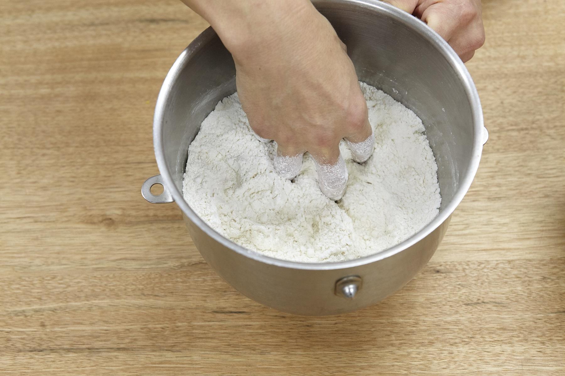 粉と卵液を混ぜ合わせた生地の温度が28度くらいになるのが理想だね。