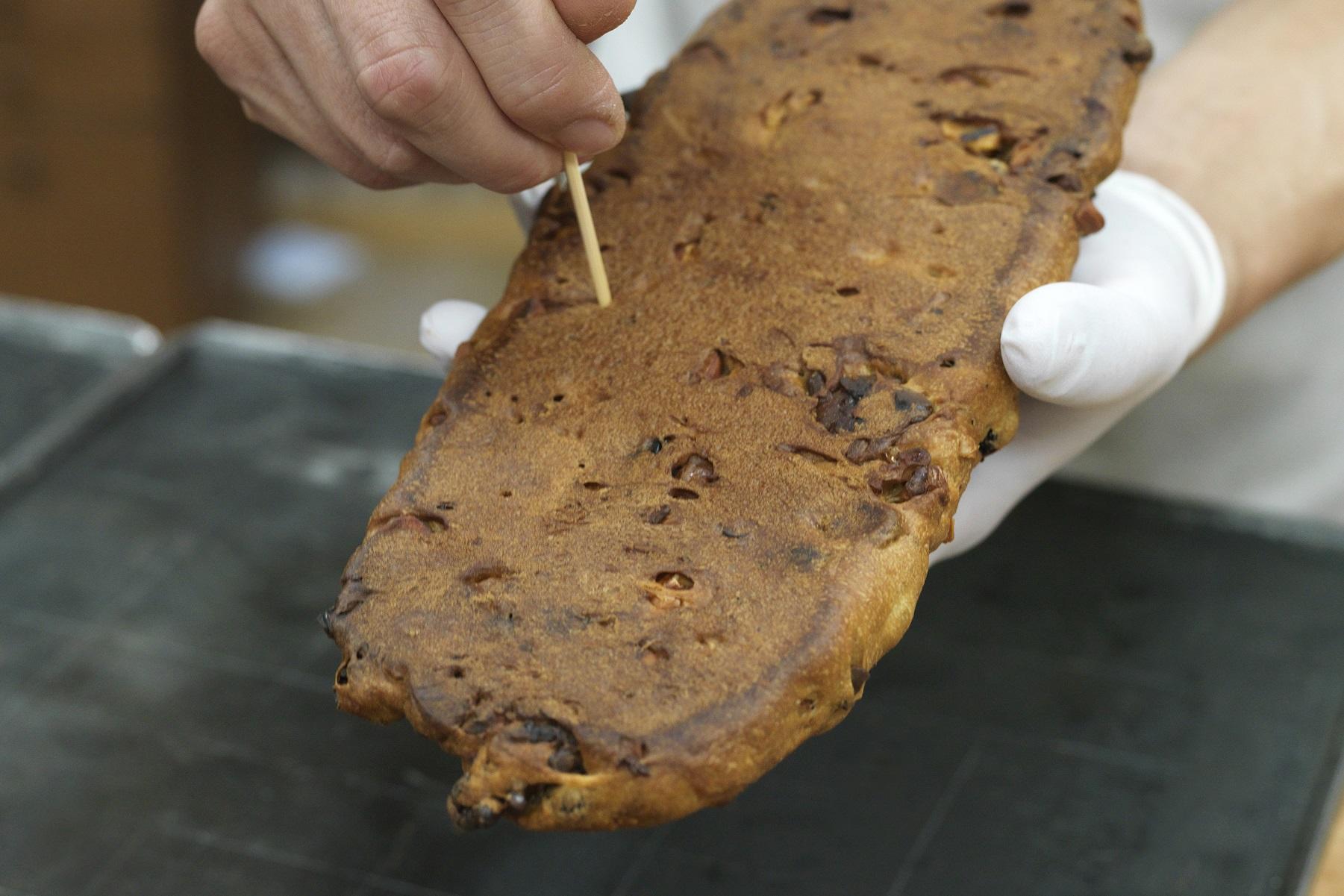 ウィーンで過ごした修行時代、菓子づくりを学んだ店でも、クリスマスが近くなるとシュトーレンをつくっていました。ドイツやオーストリアでは、強い香辛料やマジパンが入っていることが多くて、現地の味は僕の口にあまり合わなかった。自分の店でつくるときは、替わりにフルーツをたくさん使うレシピにしようと、ラム酒漬けのドライフルーツをたっぷり使っています。開店当初からラムは継ぎ足していてね。年を重ねるごとに風味が増して、うちだけの味になっているんです。