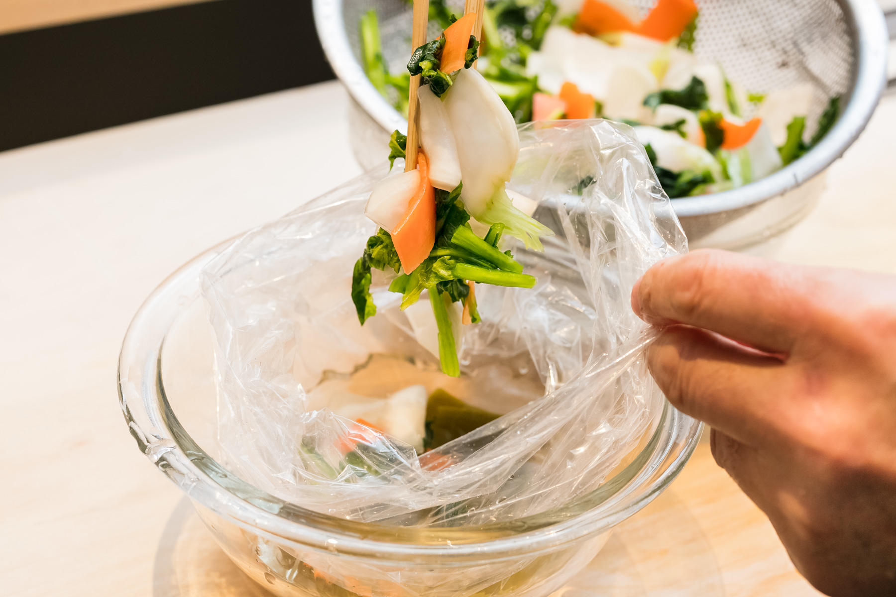 また、漬け物の場合は、塩をしておいた野菜をいったん70℃のお湯をくぐらせてから調味液に漬けることで、まろやかな味の浅漬けになるという。