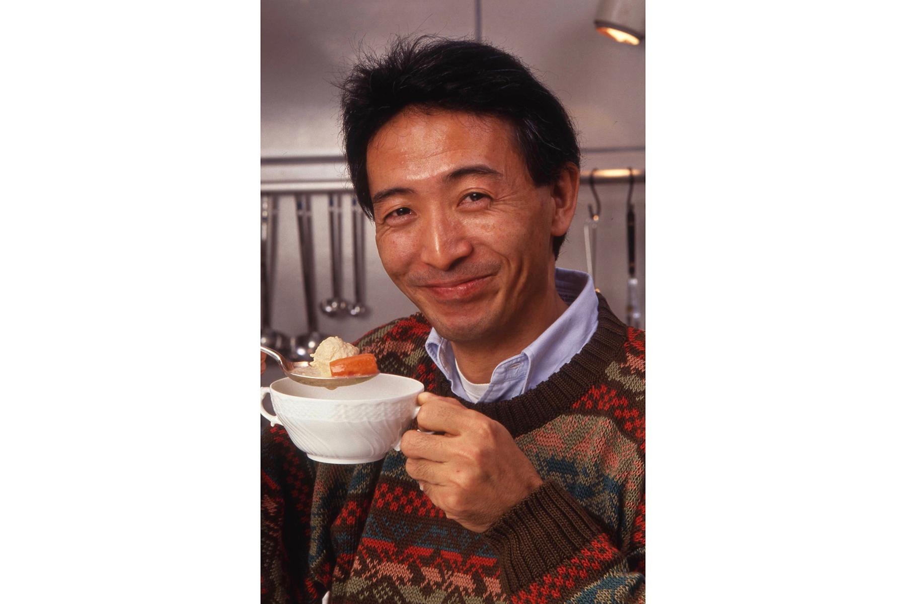 dancyu1991年12月号「華麗なるシチュー」から、レストラン「キハチ」シェフの熊谷喜八さん直伝クリームシチューに漫画家でイラストレーターのわたせせいぞうさんが挑戦する様子を紹介します。