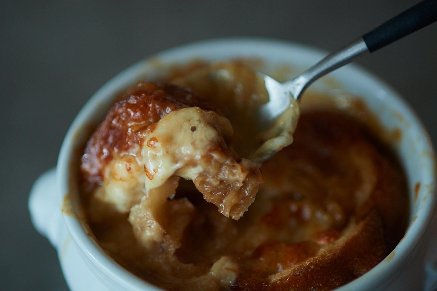 スープに浮かべたパンがふくらみ、食べごたえはスープというよりまさにグラタン。日本だとスープは「飲む」ものですが、欧米では「食べる」料理。スープは硬いパンを水分でふやかして食べることを目的としていたからです。