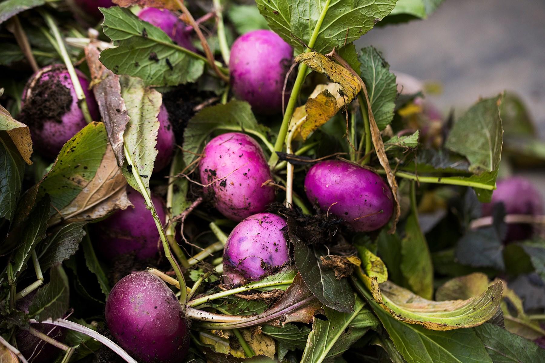 取材で頂いた温海(あつみ)かぶが葉付きである。