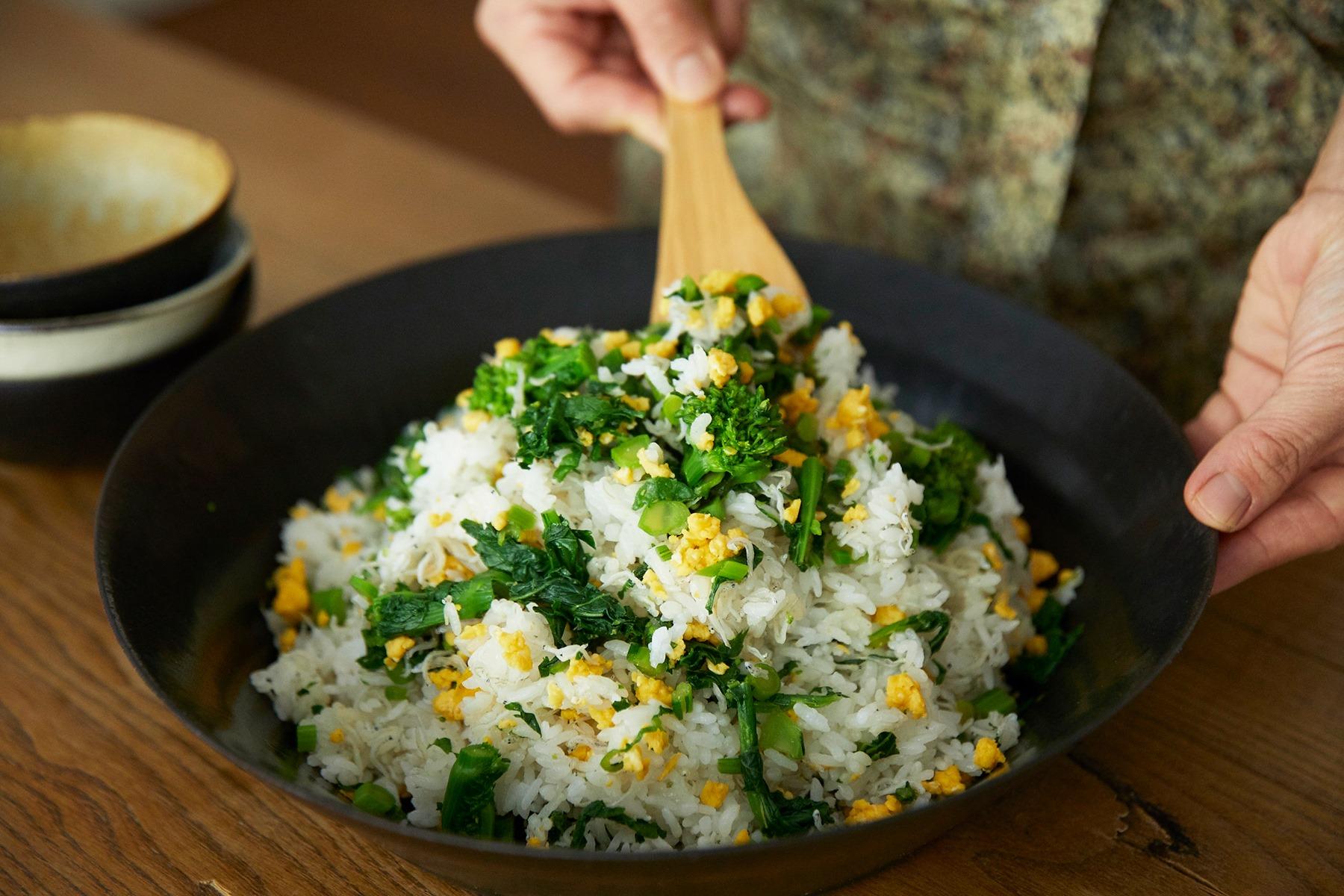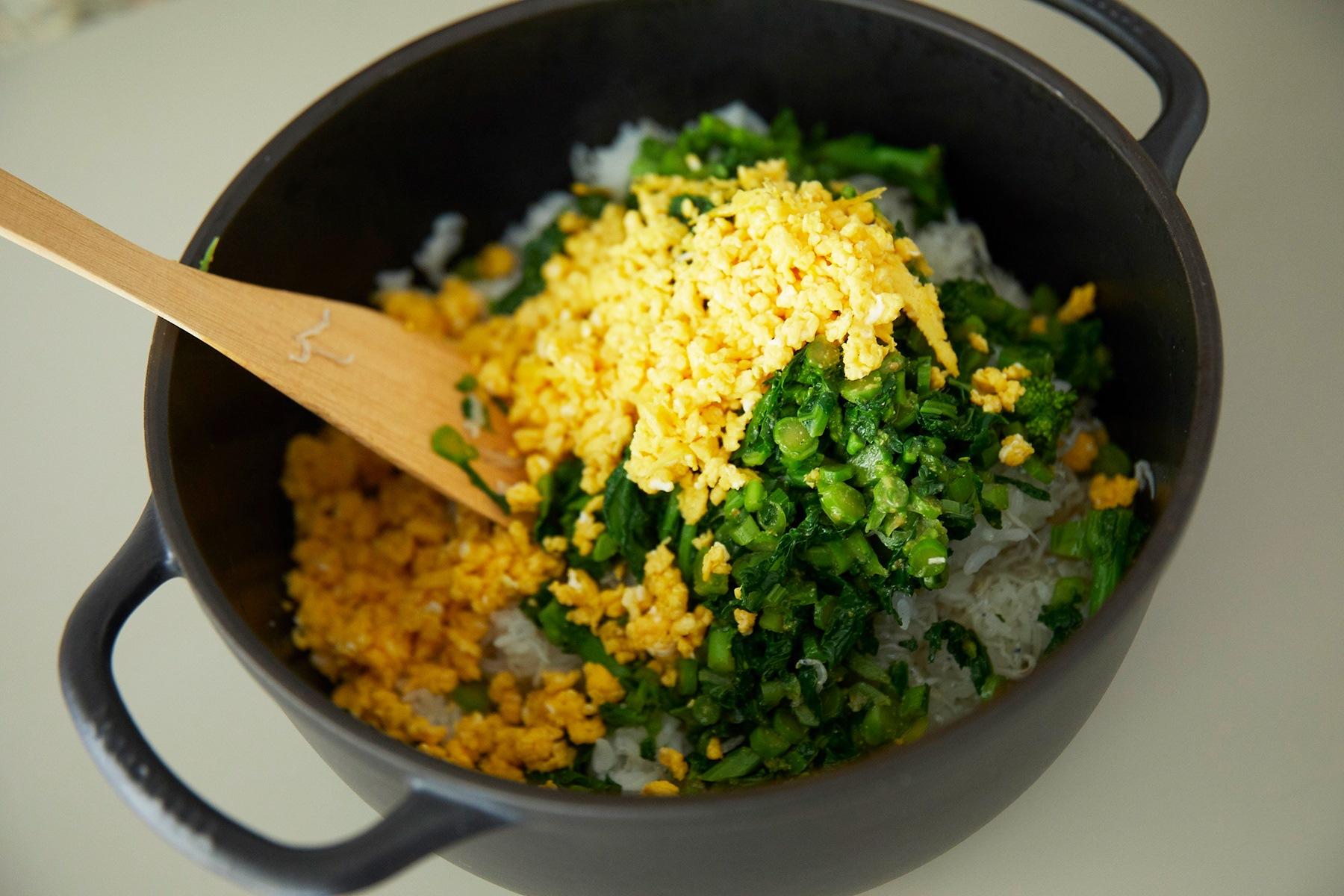 今回は和食の調理法で下ごしらえした菜の花と、ちりめんじゃこの風味をまとった混ぜ込みごはんをつくってみましょう。