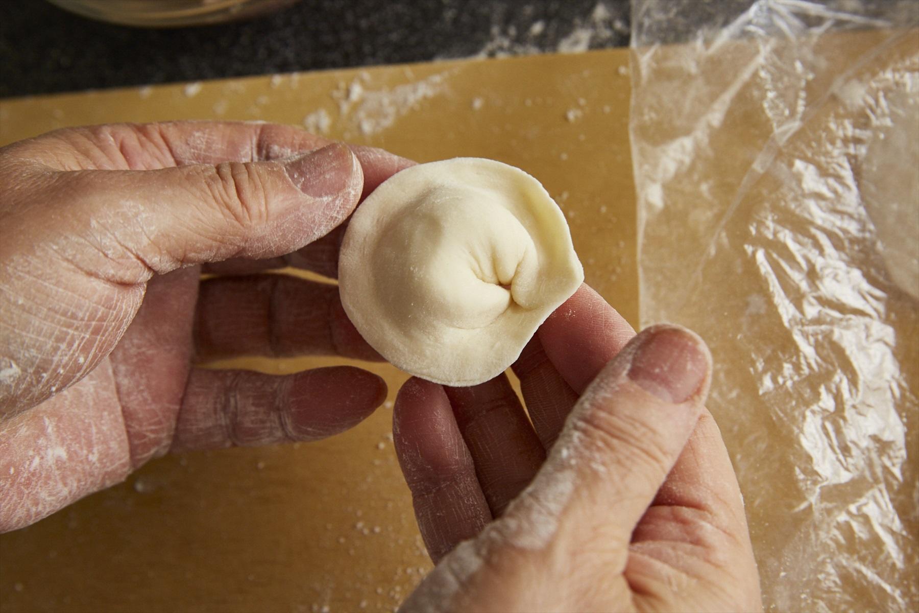 モンゴル帝国の餃子バンシーが、当時の領土の最北端であるロシアに伝わったことでできたのがペリメニ。その証拠に、バンシーとペリメニは形が同じ帽子型です。ロシアの風土に合わせて肉は牛肉に、ニンニクとサワークリームで味つけをします。