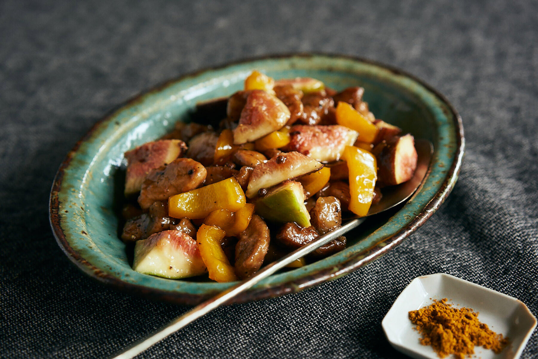 やや小ぶりに切って揚げた豚肉に、パプリカといちじくを合わせました。柔らかい酸味と甘味がおいしいおかずです。料理研究家・小堀紀代美さんの、ふわりと黒酢の香る秋ならではの酢豚です。