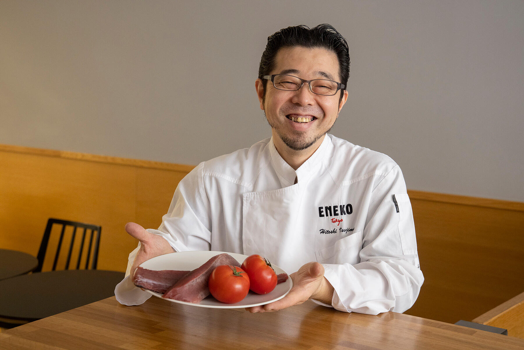 1975年、秋田県生まれ。レストラン「クイーン・アリス」で料理人としてのキャリアをスタート、2006年には舞浜店の料理長に就任する。2014年「日比谷パレス」料理長。その後、スペイン・バスク地方のミシュラン三つ星レストラン「アスルメンディ」で4カ月間の研修を経て、2017年「エネコ東京」総料理長兼支配人。エネコ・アチャ氏より、絶大な信頼を受ける。