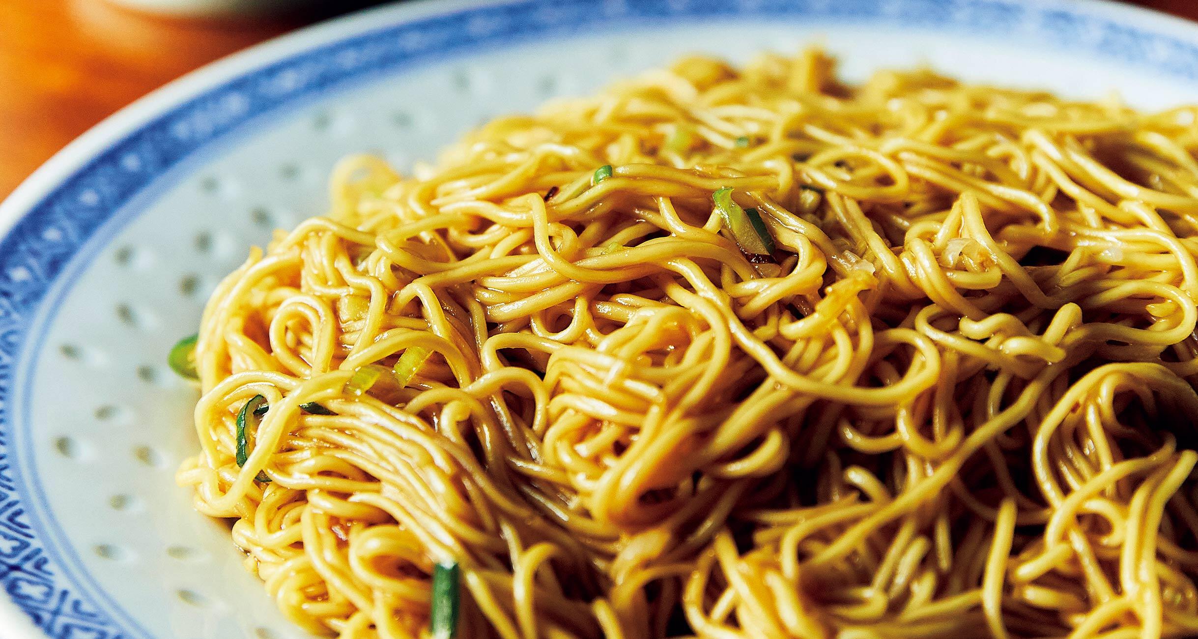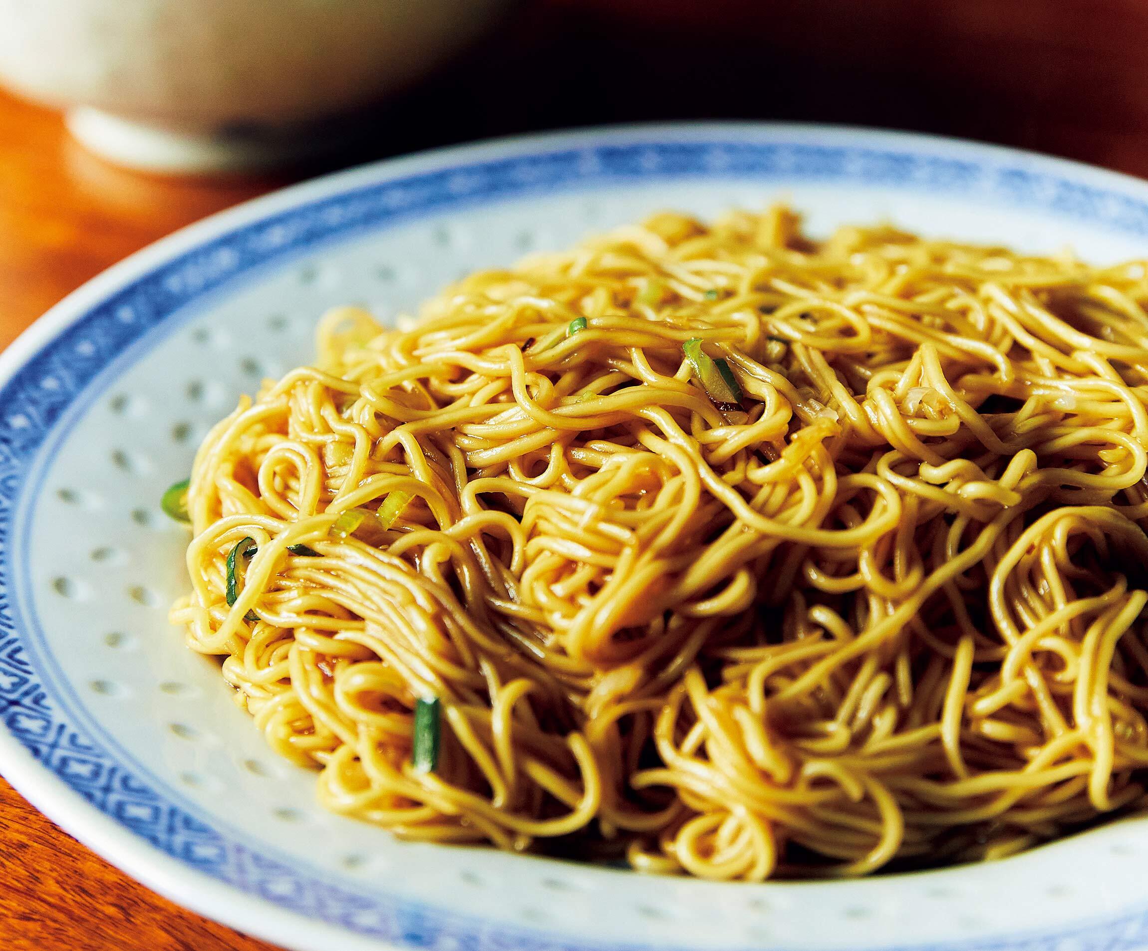 四ツ谷の路地裏で長きにわたり愛され続ける広東料理店。作家・開高健をはじめ多くの文化人に愛された歴史を持つ。麺のほかにはねぎと生姜のみという潔さのカキソース和えそばは、細麺ながらコシが強く、オイスターソースと醤油が香るシンプルなタレがからみつく。一度食べたら忘れられない、中毒性のある傑作麺だ。
