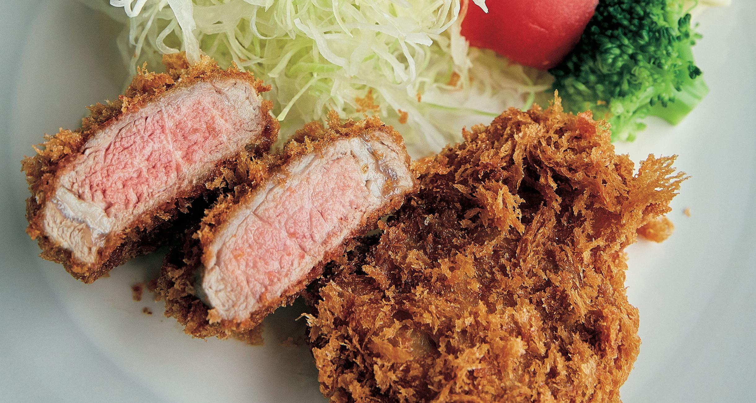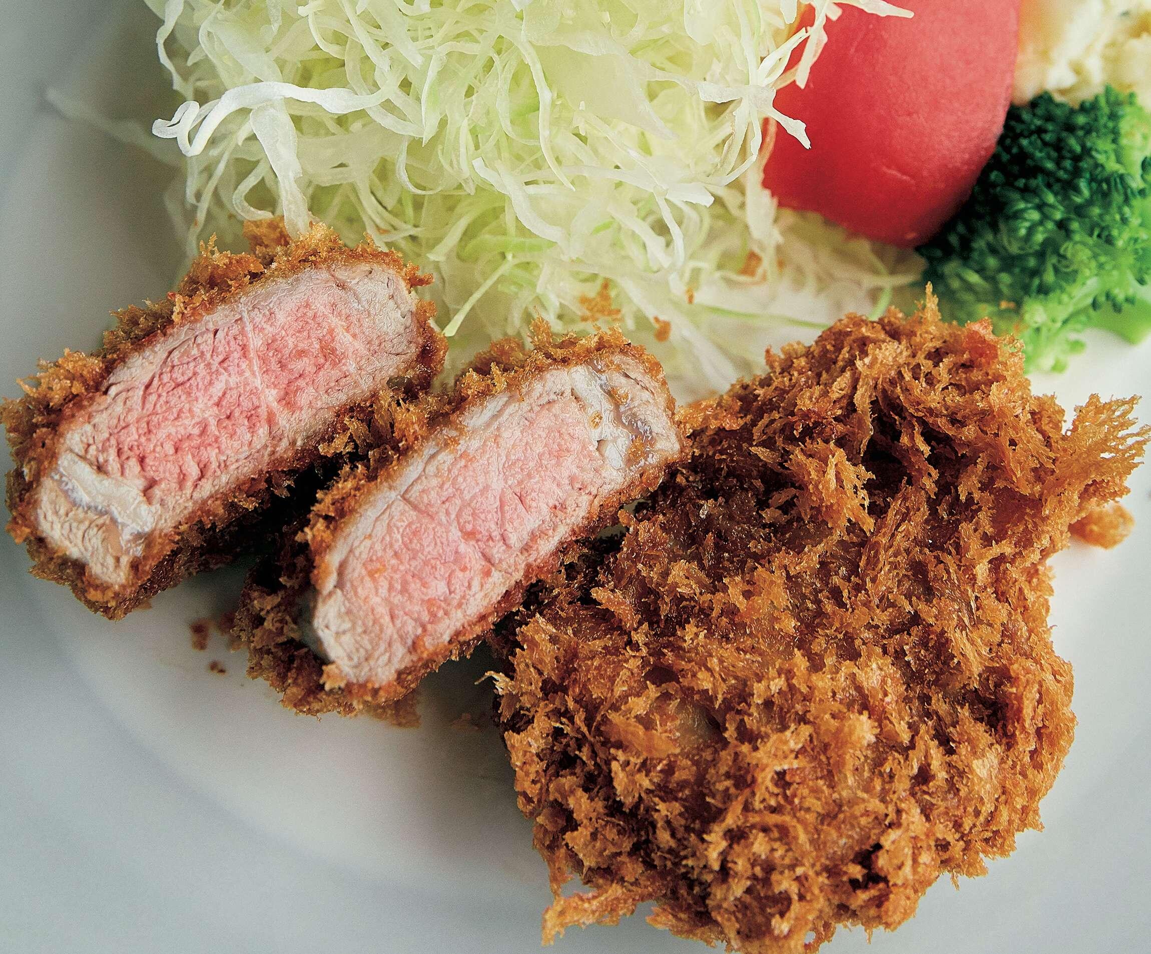 ハンバーグ、ステーキ、グラタンなど、古賀達彦シェフの完璧な火入れと、丁寧な仕事が行き届いたソースにファンが多い洋食店。エビフライをはじめとした揚げ物も豊富で、ラムカツはラム肉特有の香りと風味を生かしつつ、軽やかでザクッとした衣の食感が絶妙にマッチする。