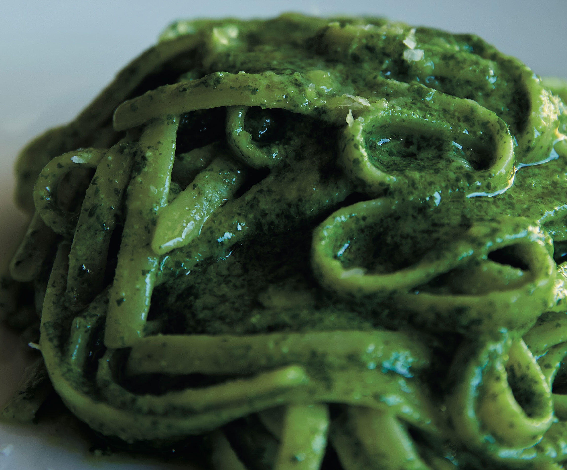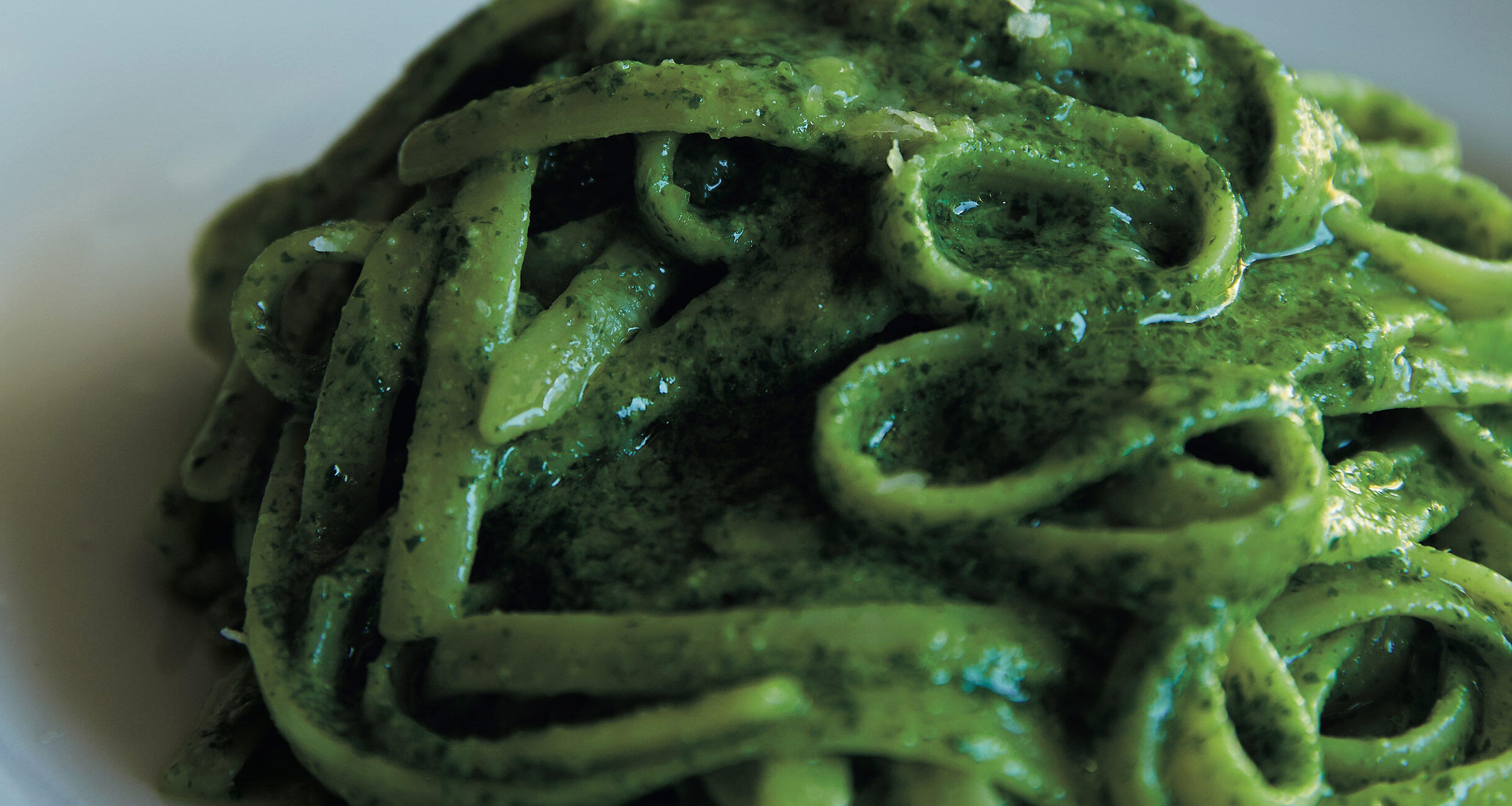 *パスタはヴォイエッロを使用。ソースをしっかりからめたいので、味をとらえて離さないリングイネを合わせる。アルデンテよりも、芯が残らない程度の柔らかさで。
