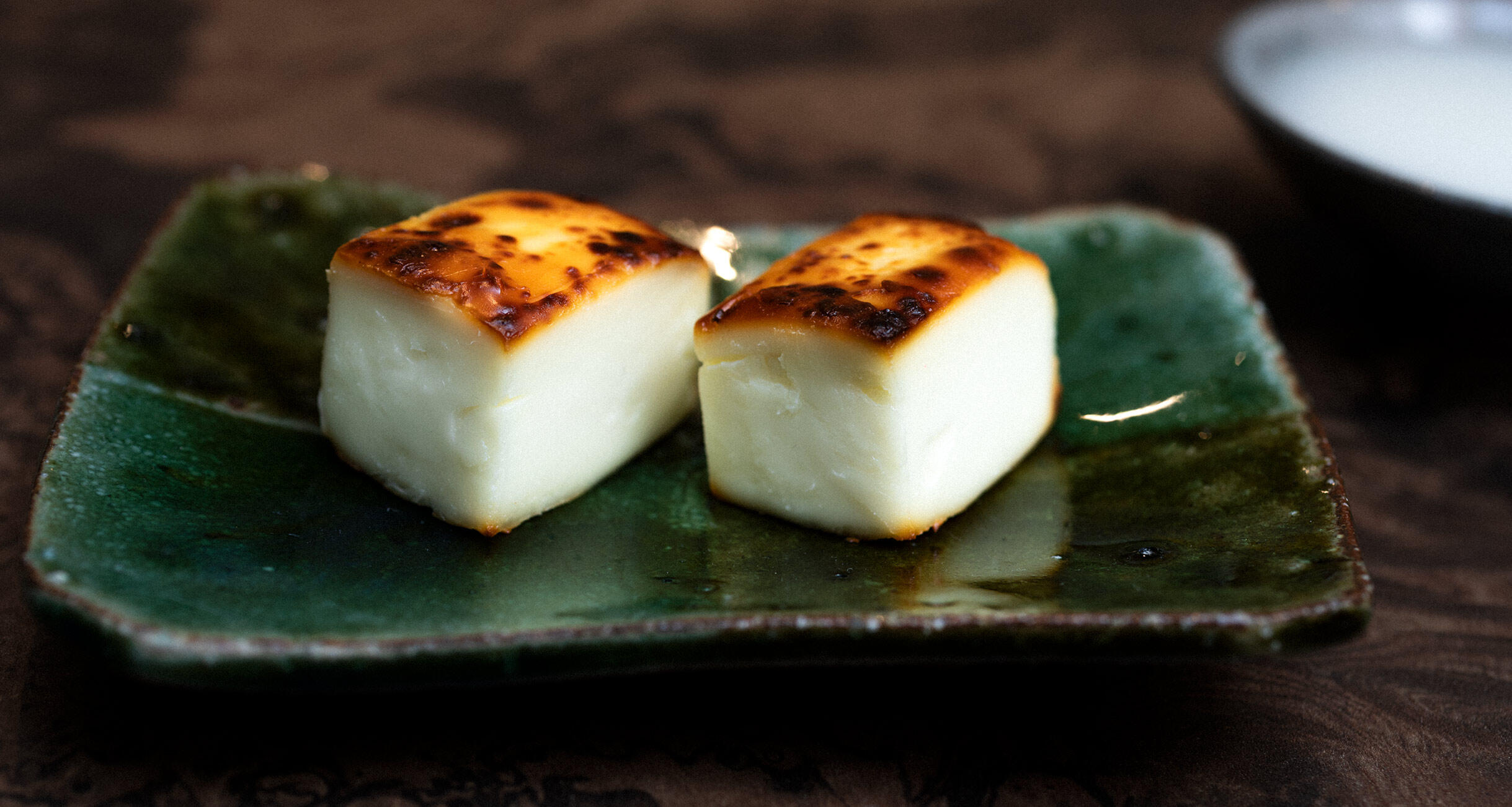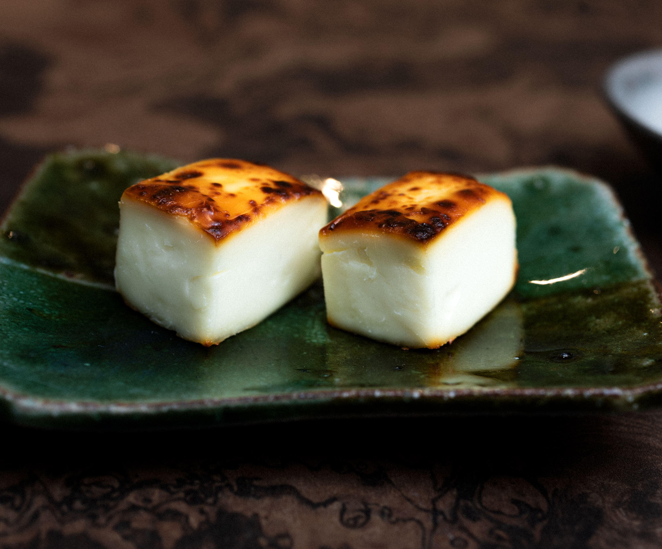 クリームチーズを取り出し、食べやすい大きさに切る。アルミホイルにのせ、オーブントースターなどで上下の面をこんがりと焼く。