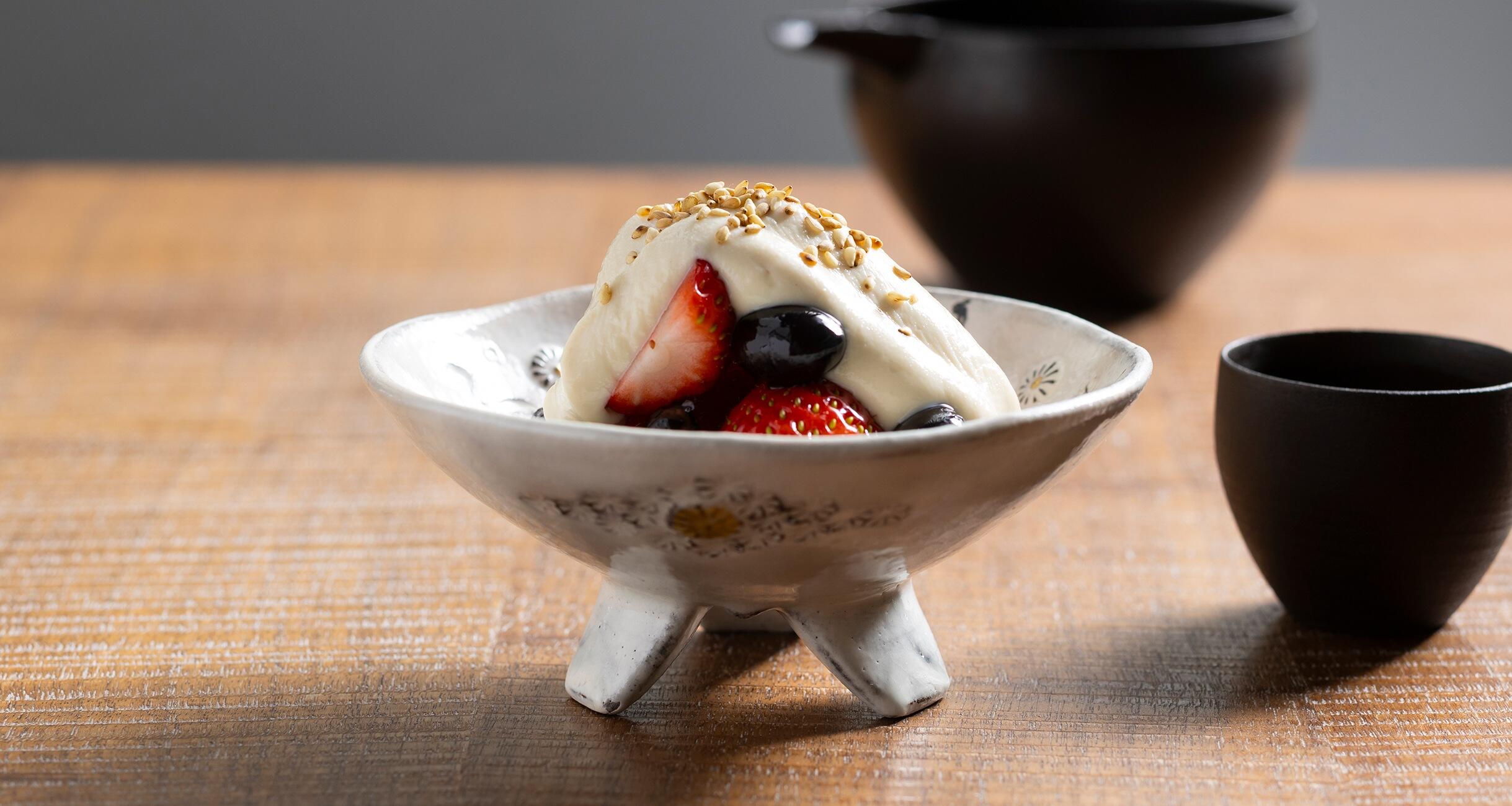 2026年日本酒dancyu「出会えてよかった!心ふるえる酒」特集では、人気酒場に家庭でもつくれる酒肴レシピを教えてもらいました。プロならではのセンスが光る料理ばかりで酒がますますおいしくなること間違いなし!盛り映えする料理が多いので、ゲストを招いた酒宴にもご活用ください。今回は、京都「日本酒とお料理 お湯」による「いちごと黒豆の白和え」をご紹介します。
