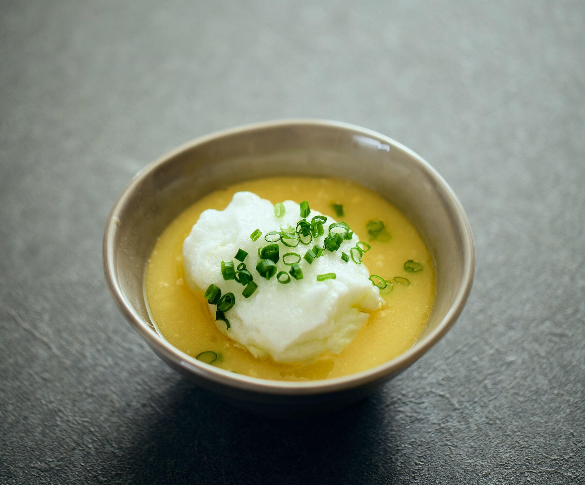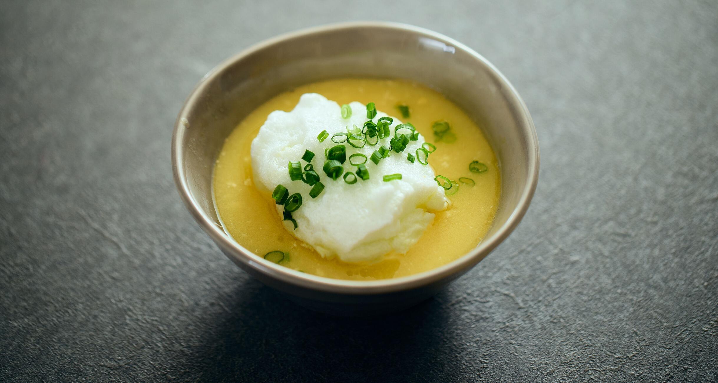 卵白がふわっと膨らんだら完成。器に注ぎ入れ、青ねぎをのせる。