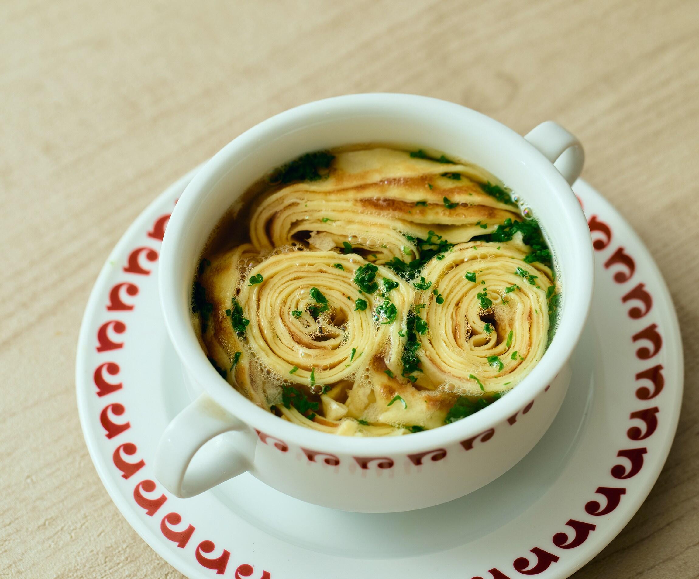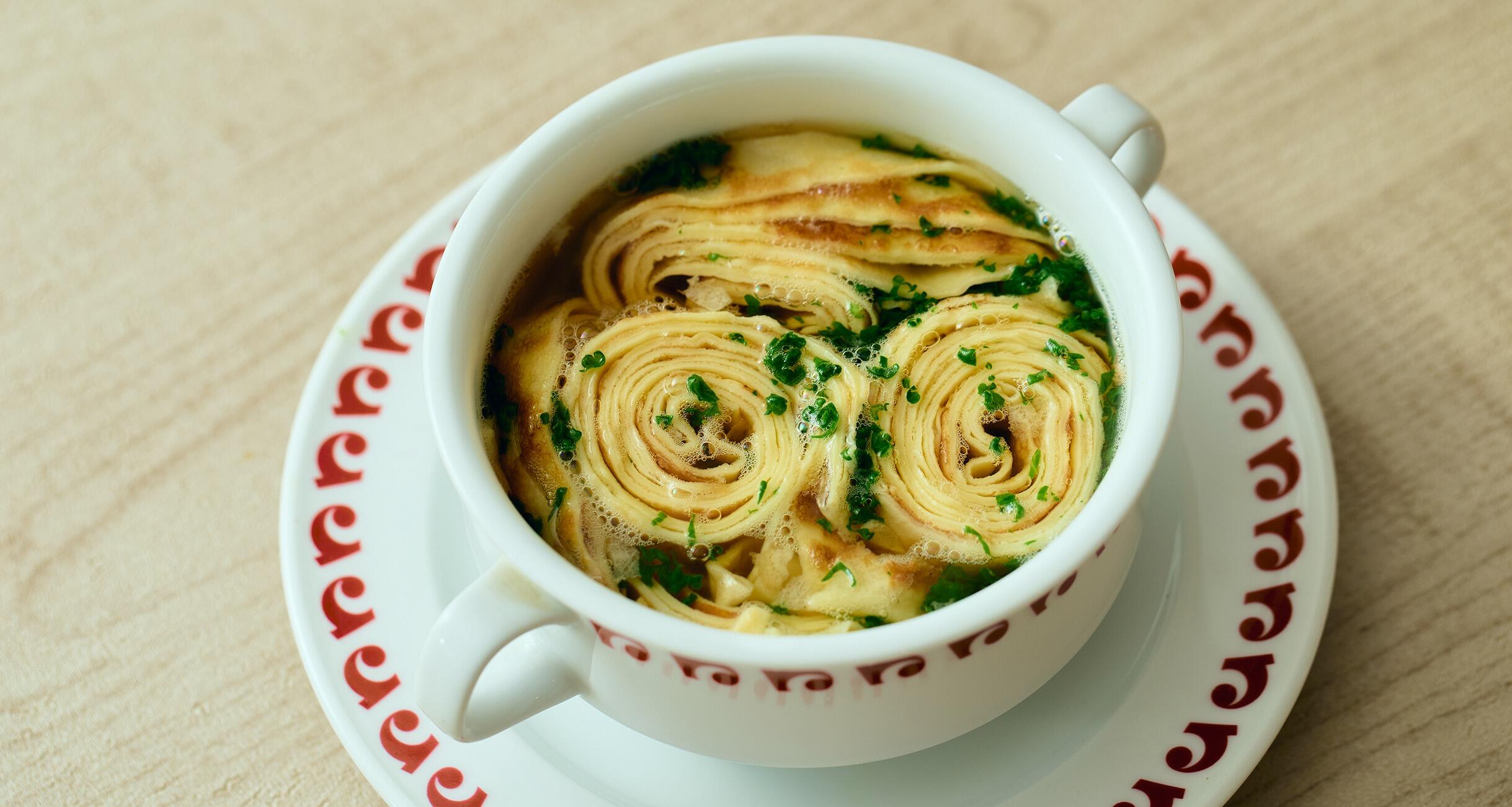 朝晩がまだ冷え込む4月って、温かくて元気の出るたまごスープを体が欲しますよね。ということで、スープ作家の有賀薫さんに、今お薦めの30品で4月1日から始まる「たまごスープ日めくりカレンダー」をつくっていただきました。毎日一品ずつ、30日で確実にたまご料理の腕が上がります。4月14日は、たまごスープの新境地といっても過言ではない「クレープのコンソメ」。クレープを食べると、生地が吸ったコンソメがじゅわっとあふれて幸せな気分に満たされます。ハンバーグやフライなど、洋食メニューのお供にしたいスープです。