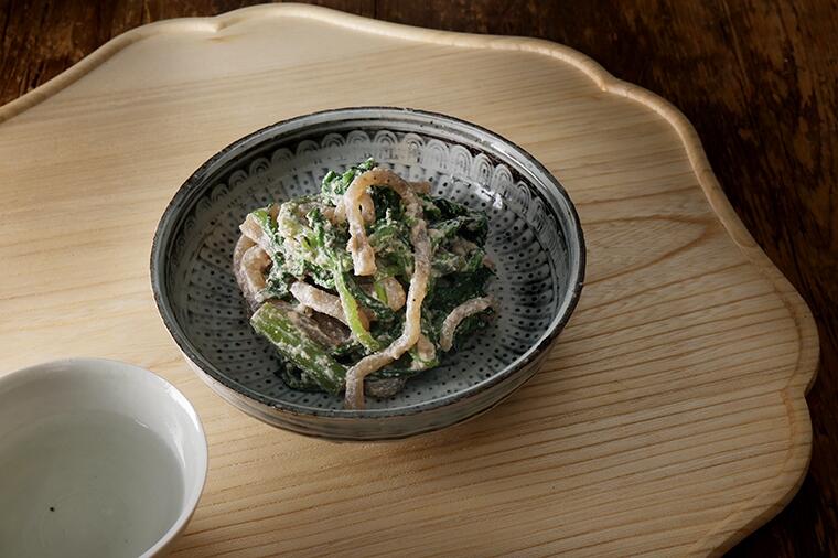 お燗と合わせたい"春菊とこんにゃくのくるみ和え"