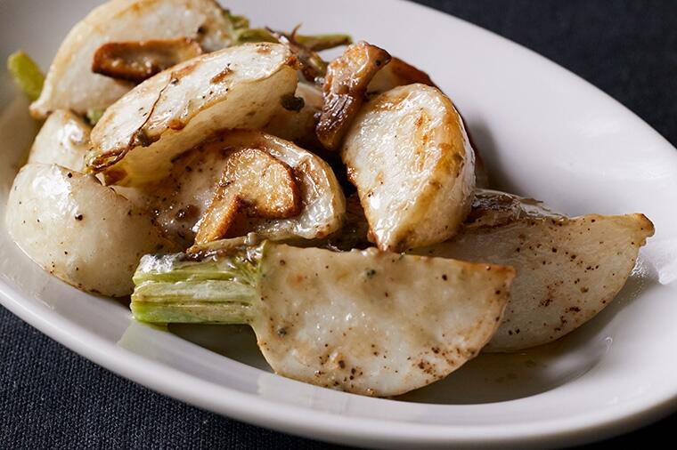 ジューシーな味わいの"焼きかぶのブルーチーズ和え"