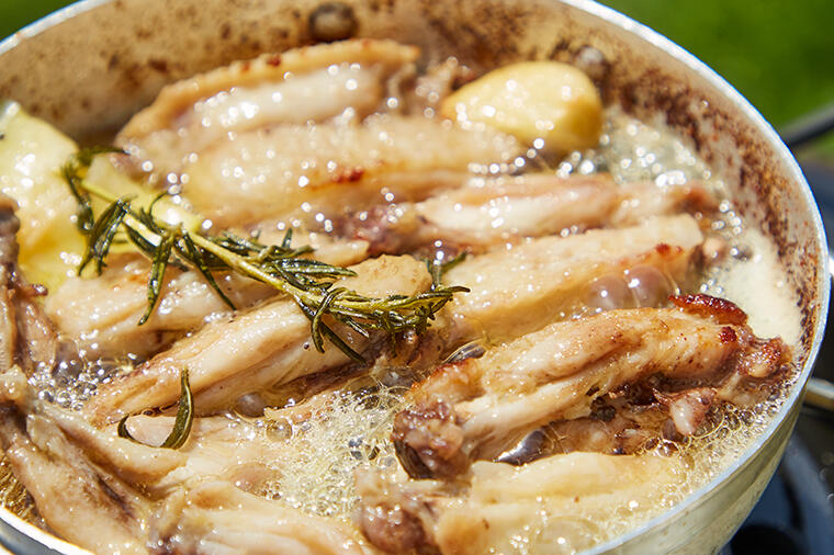 バターの海の中でじっくりと火を入れた鶏の手羽中は、ふっくらやわらか。ミルキーなバターのコクとローズマ...