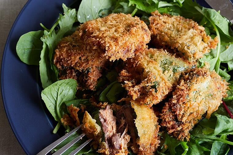 青じそで巻いて1分未満の超クイック揚げ時間で、カリッと仕上げます。そのまま食べても、パンに挟んでサバカ...