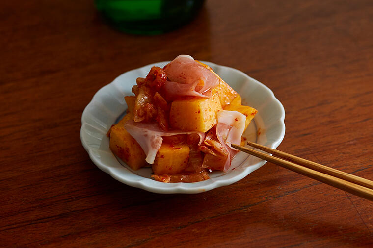 塩気と甘味のバランスが絶妙な"柿と生ハムのキムチ和...
