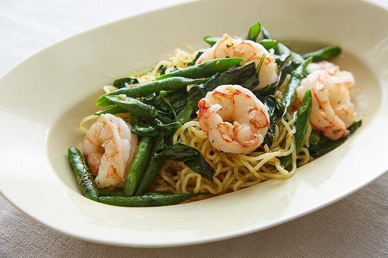 ぷりっぷりの海老とチーズとフレッシュバジル。力強い香りをプラスして目にも鮮やかな逸品に仕上げました。...