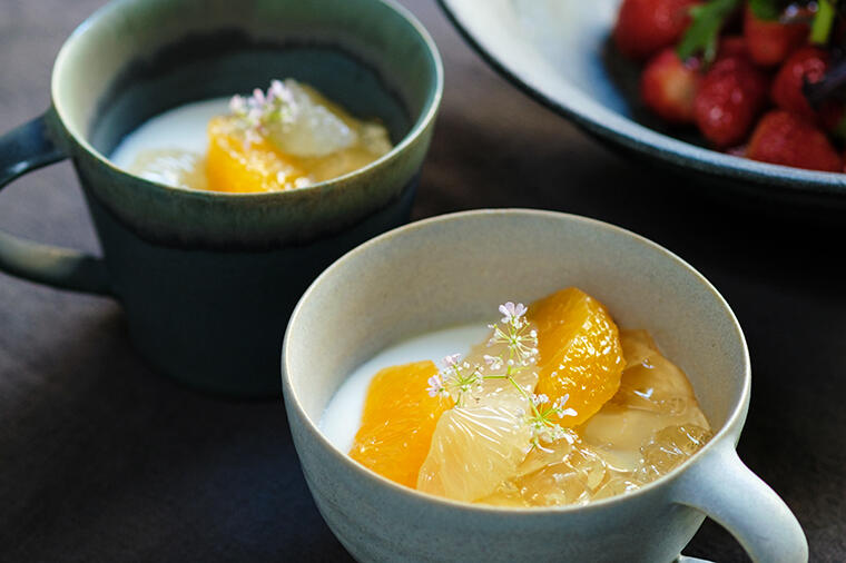 柑橘と白ワインの風味が爽やかに香る軽やかなデザートです。器と料理の組み合わせを提案する店「カモシカ」...