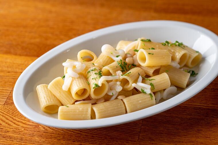 柔らかな食感のヤリイカと白いんげん豆が絡み合い、優しい甘さを感じる味わいです。パスタが主食のデザイナ...