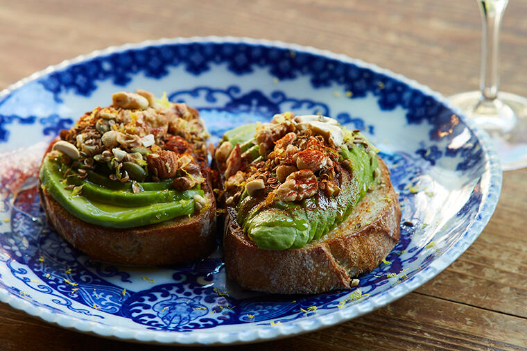 アンチョビ、刻み海苔、リンゴジャムを乗せた3種のカナッペです。それぞれの具材ごとの特徴を楽しんでくださ...