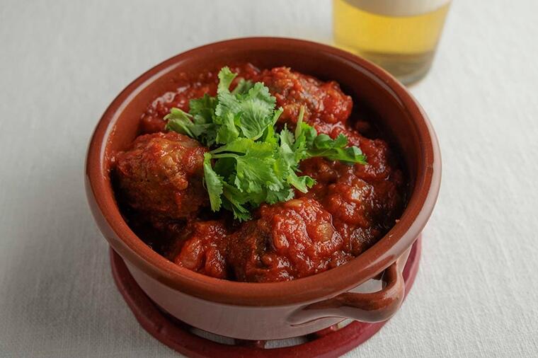 スパイスの効いた肉団子が、トマトソースの甘味と調和します。小鍋ながら満足感たっぷりで、飲みのメインに...