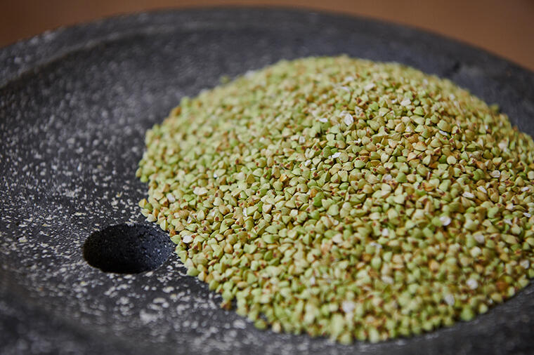 自家製粉をする蕎麦屋が増え続ける昨今だが、玄蕎麦の殻剥きからする店はまだ少数派だ。調理場の奥にある製...